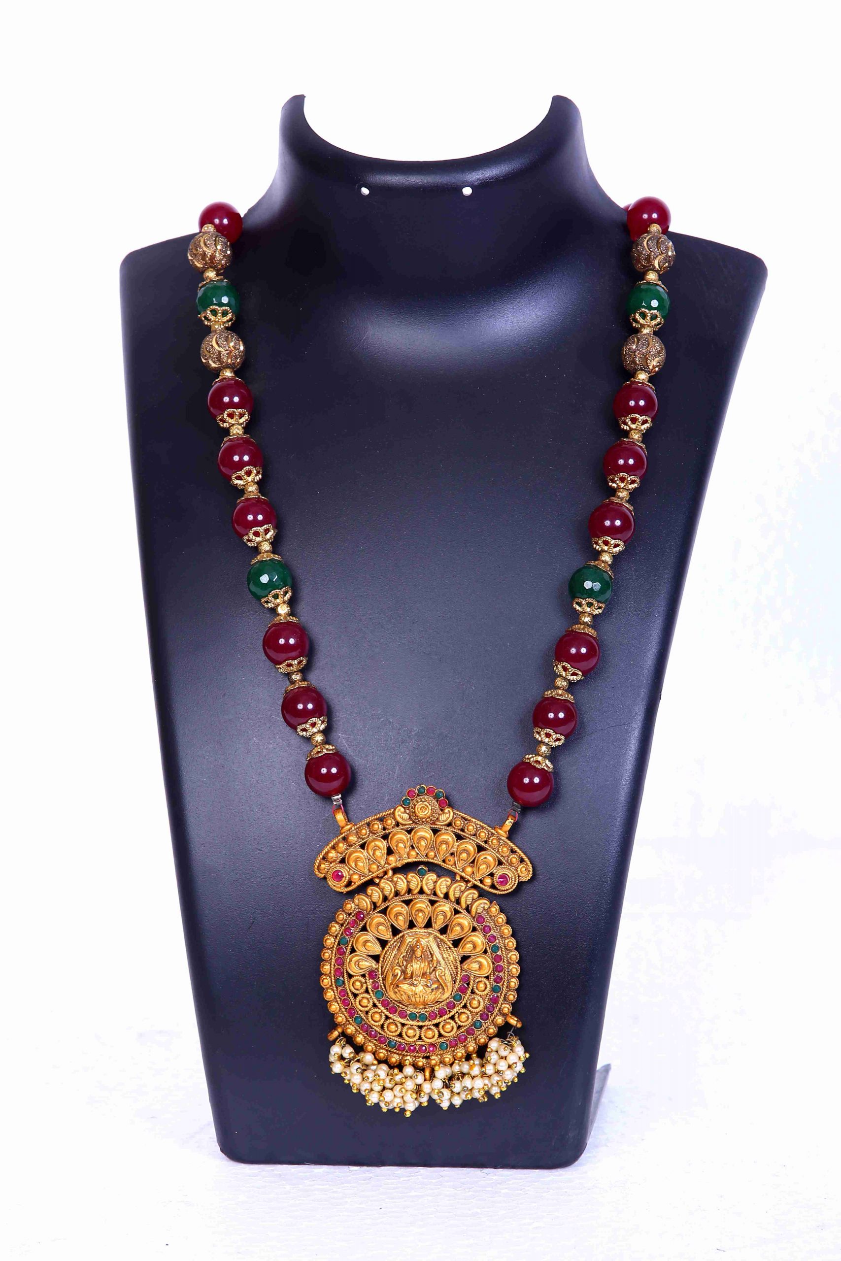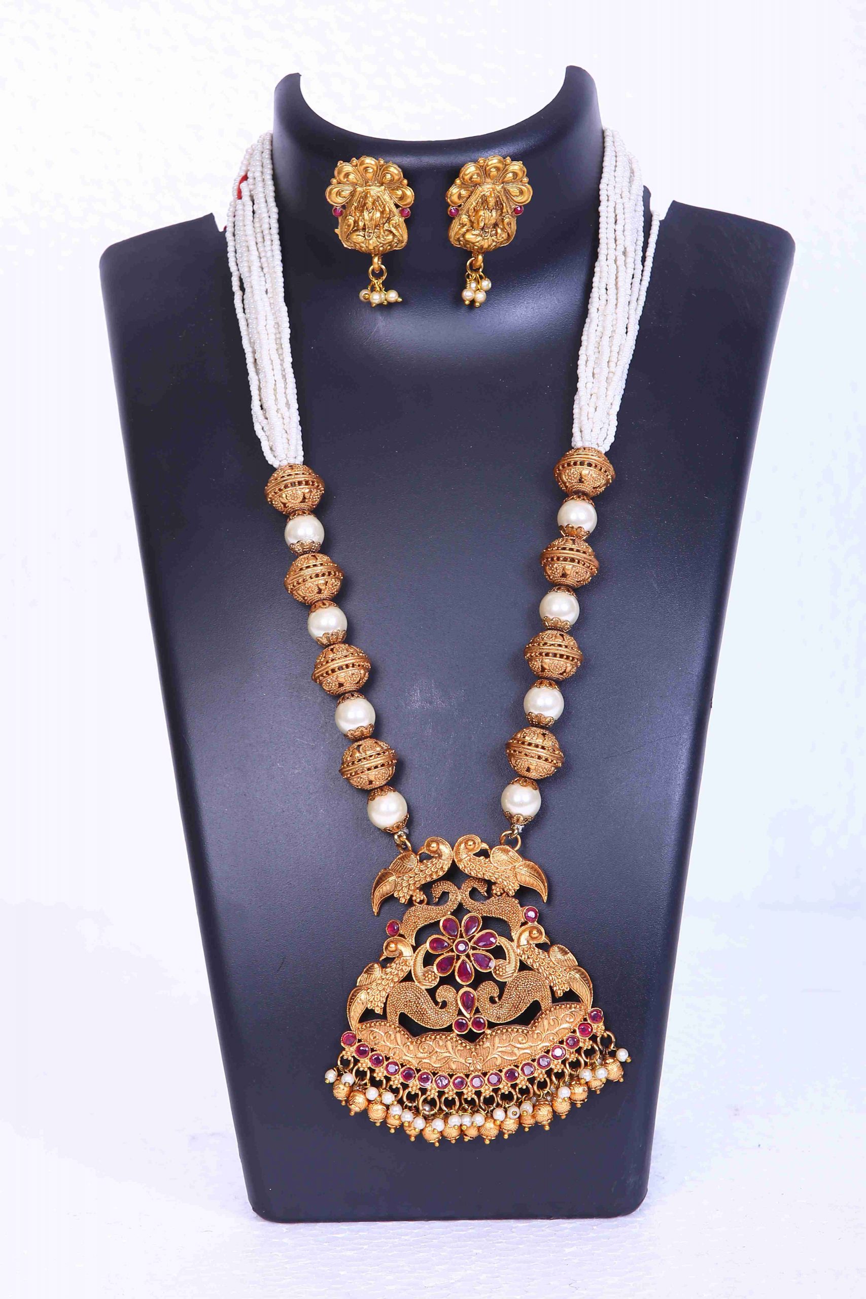 Step into elegance with this exquisite Handcrafted Temple Jewellery Set, inspired by South Indian tradition. Featuring an antique gold-plated finish , and matching jhumka earrings, this set is perfect for festive occasions, weddings, and classical dance performances like Bharatanatyam and Kuchipudi.