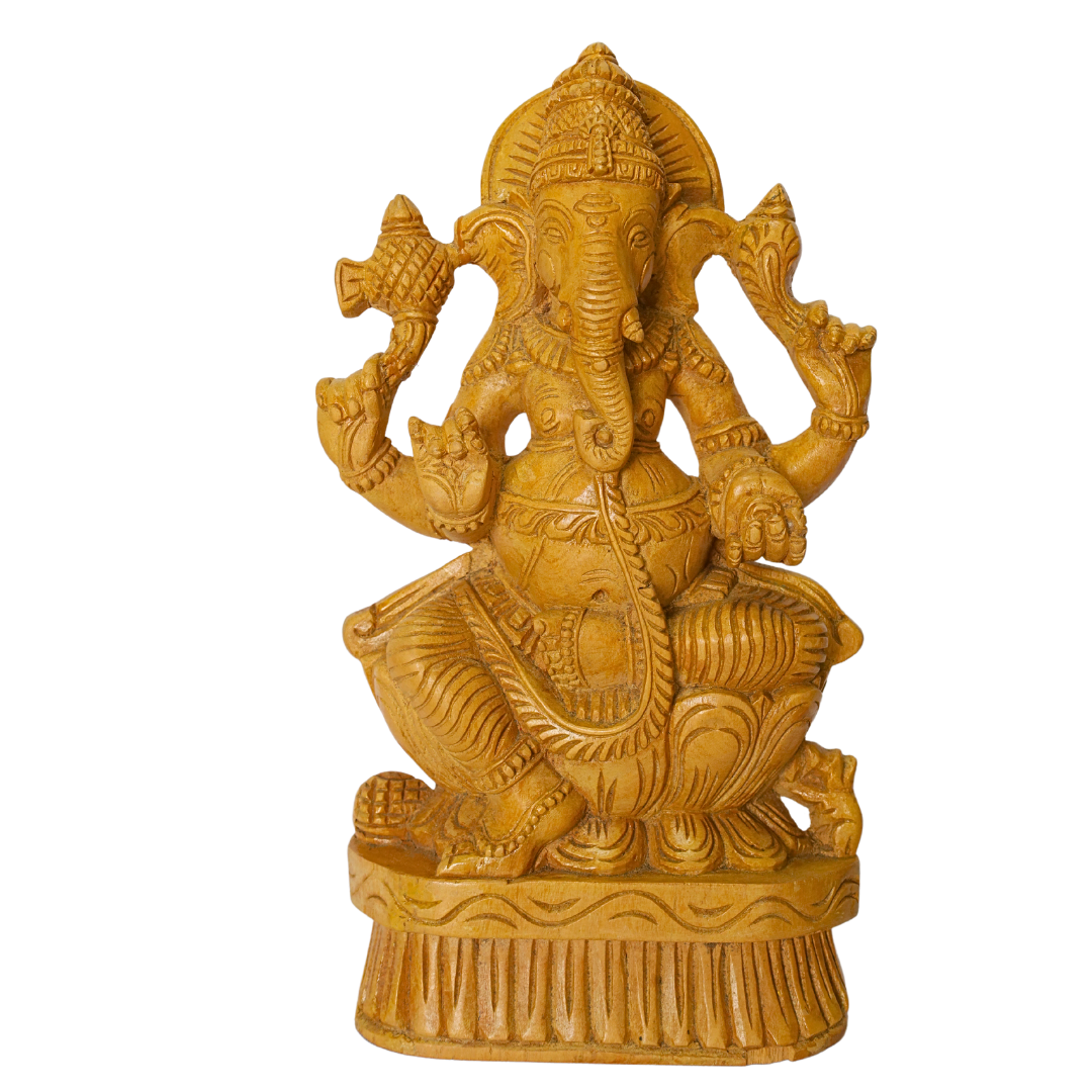 - Material & Craftsmanship: Crafted from high-quality wood, this Ganesha idol is polished to highlight the natural wood grain, with fine details capturing the gentle expression and serene presence of Lord Ganesha. Each piece reflects traditional carving techniques that showcase skilled artisanship.
