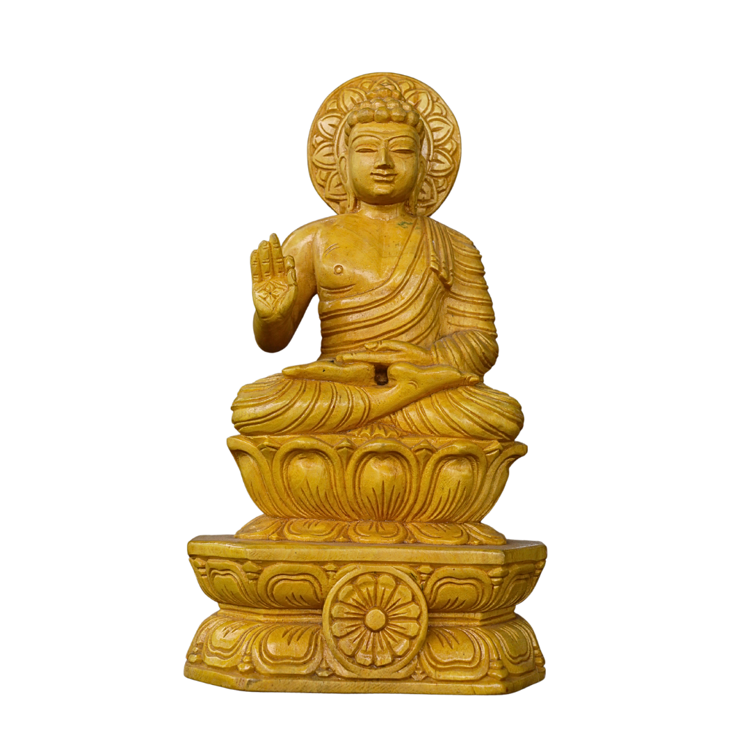 - Care Instructions: To keep this Maavulinga Wood Buddha with Snake statue looking its best, dust it regularly with a soft cloth to remove any accumulated dust or dirt. Avoid using harsh chemicals or abrasive cleaners, as they can damage the delicate carvings. For a deeper clean, use a mild wood cleaner with a soft cloth. To preserve its natural wood finish, you can apply a small amount of wood polish or wax to maintain its luster and protect it from wear. Keep the statue in a dry, cool place to prevent moisture damage and to preserve the beauty of the wood.