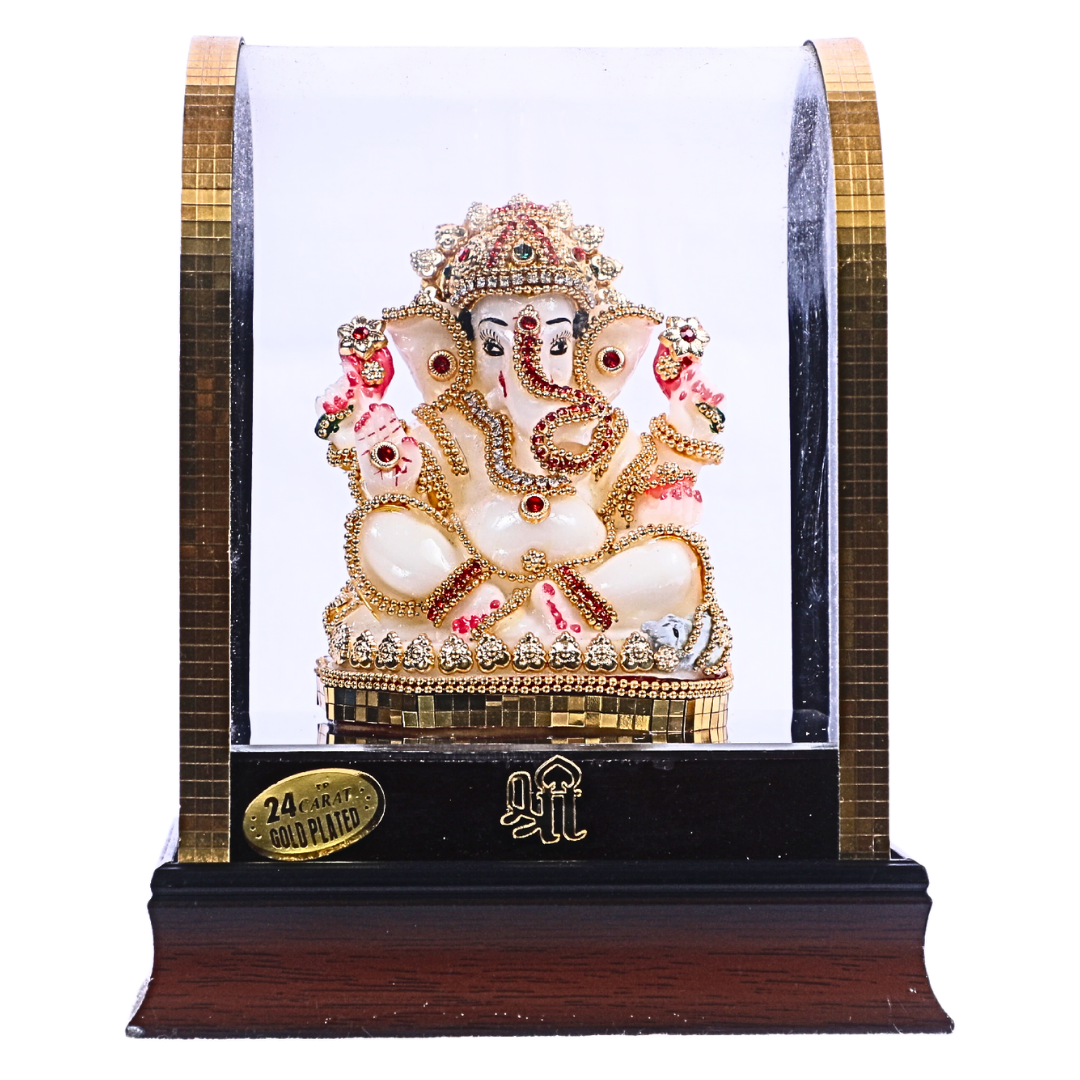 - Design: The statue depicts Lord Ganesha in a traditional pose, with his elephant head, large ears, and multiple arms holding his signature symbols like a lotus, modak, and axe. His intricate detailing showcases the richness of his features, including his trunk, tusks, and attire.