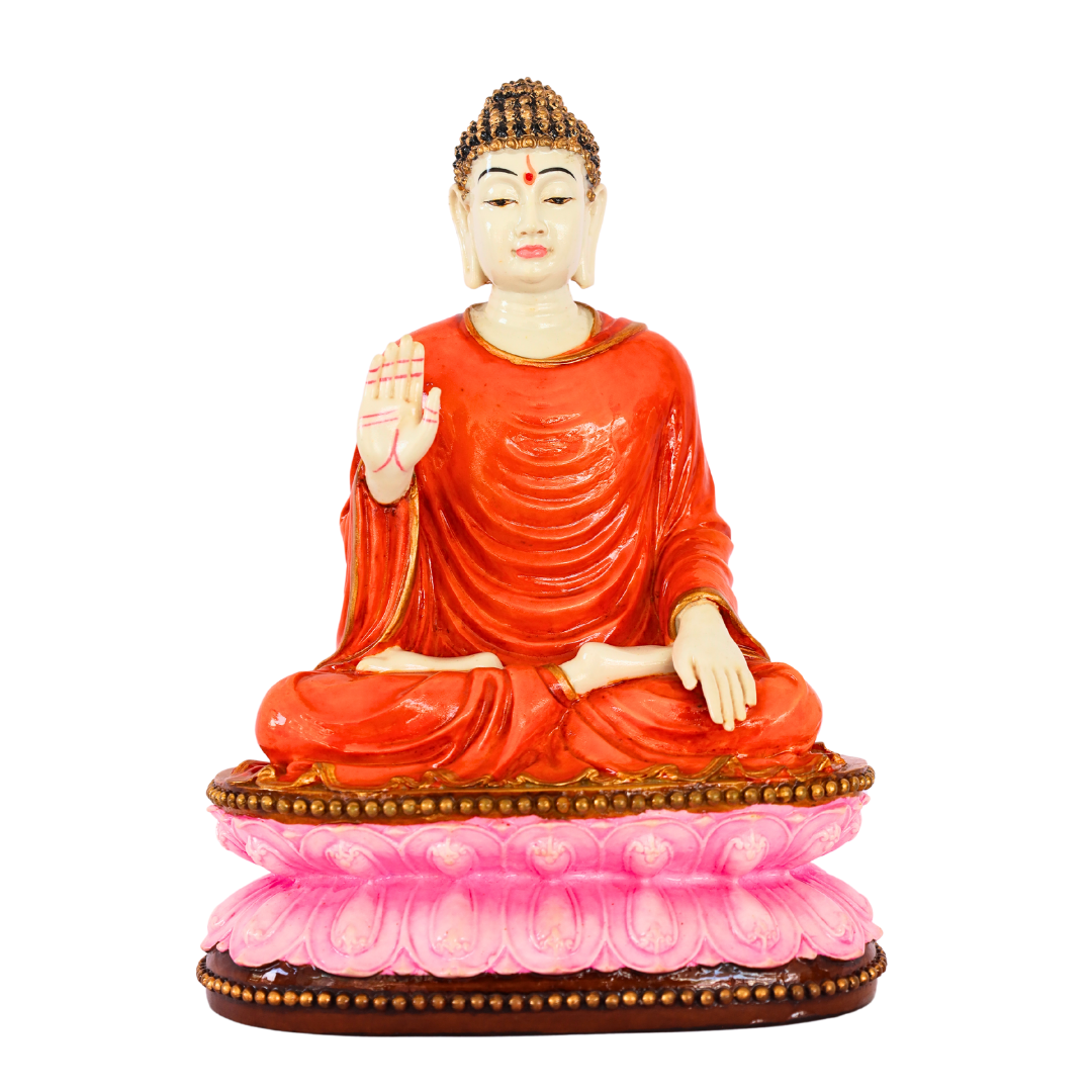 - Design: Handcrafted Lord Buddha in a serene meditation pose with intricate detailing on robes, face, and posture.
