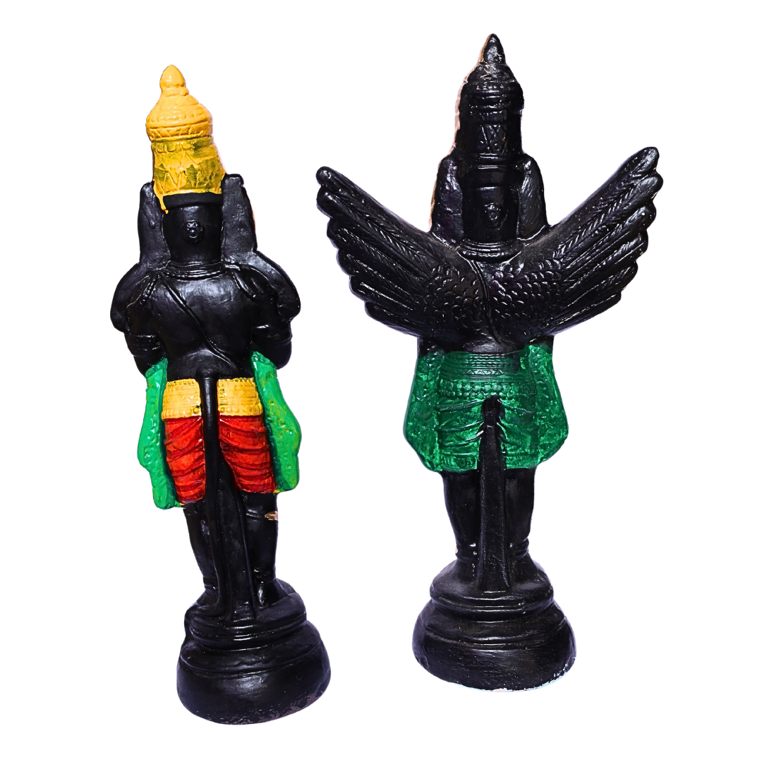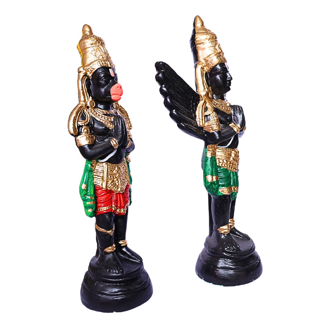 - Cultural & Religious Significance: Both Garudar and Anjaneyar (Hanuman) hold immense significance in Hindu mythology. Garudar, the vehicle of Lord Vishnu, is known for his speed, strength, and wisdom. He is a symbol of devotion and protection. Anjaneyar (Hanuman), the son of the wind god Vayu, is celebrated for his devotion to Lord Rama and his immense strength. Together, these figures represent protection, courage, loyalty, and divine grace.