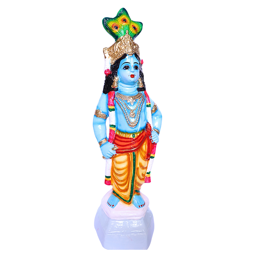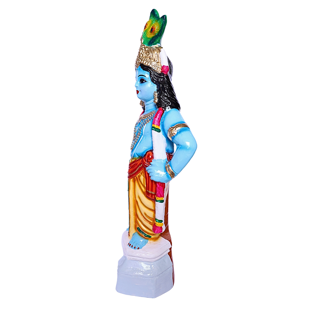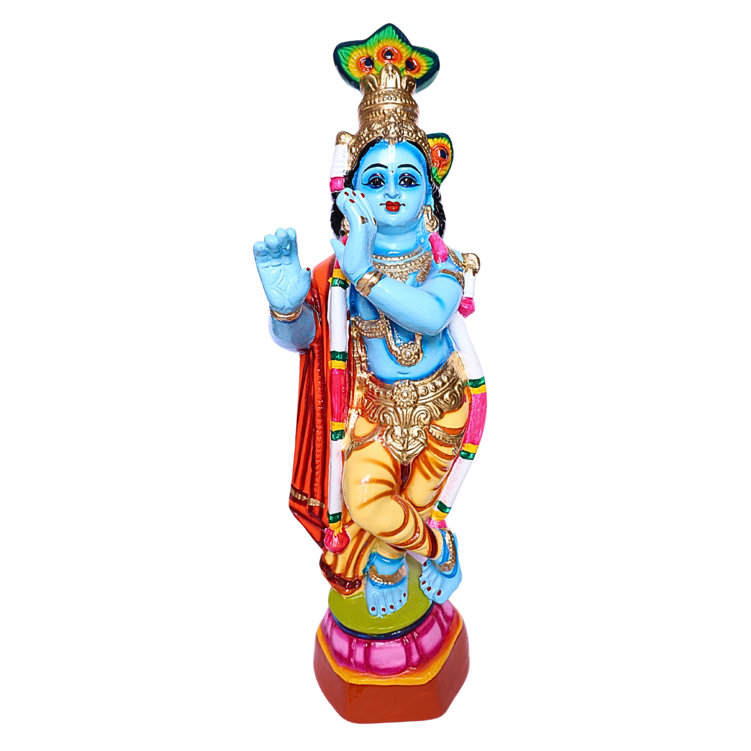 Care Instructions: To maintain the beauty of the Paper Mache Krishnan statue, dust it regularly with a soft, dry cloth. If cleaning is required, use a damp cloth and avoid harsh chemicals or abrasive materials that may damage the finish. Keep the statue in a cool, dry place, away from direct sunlight and moisture.