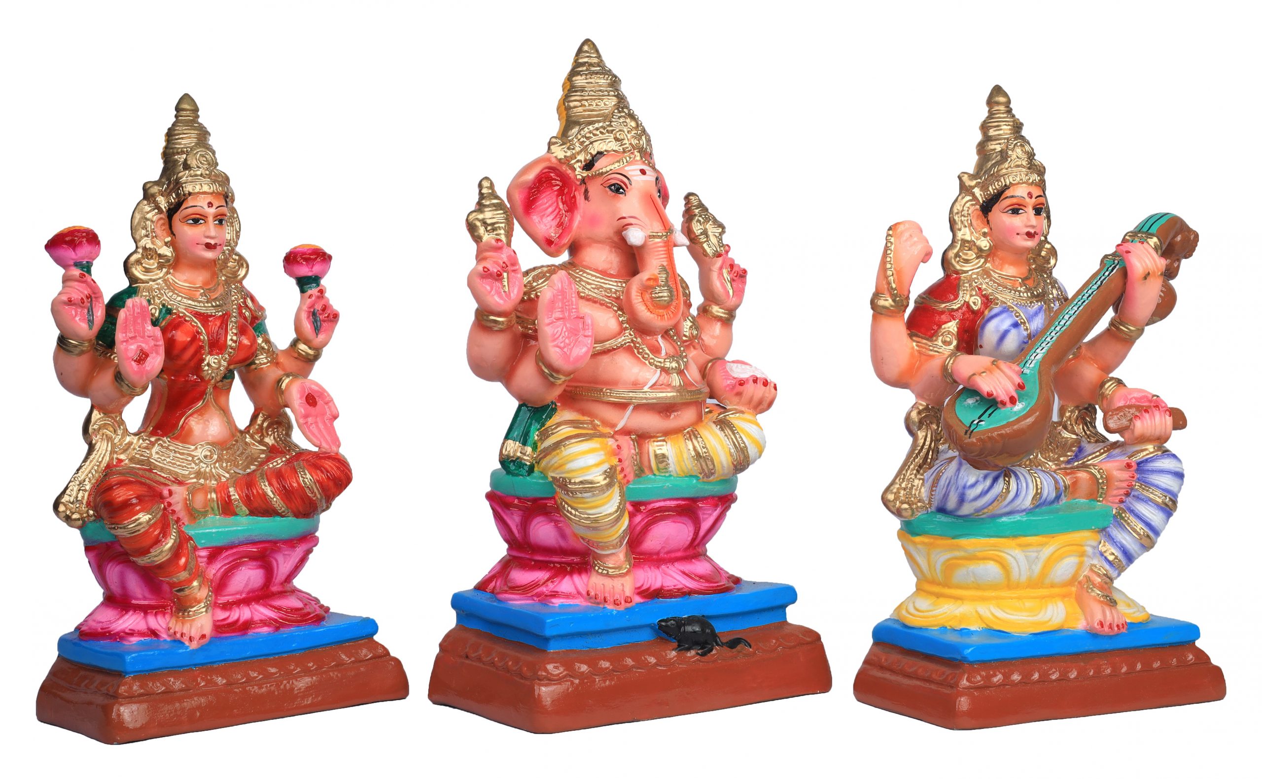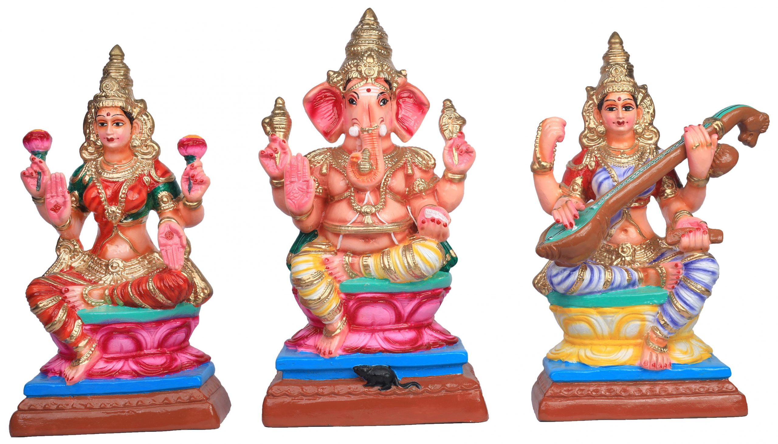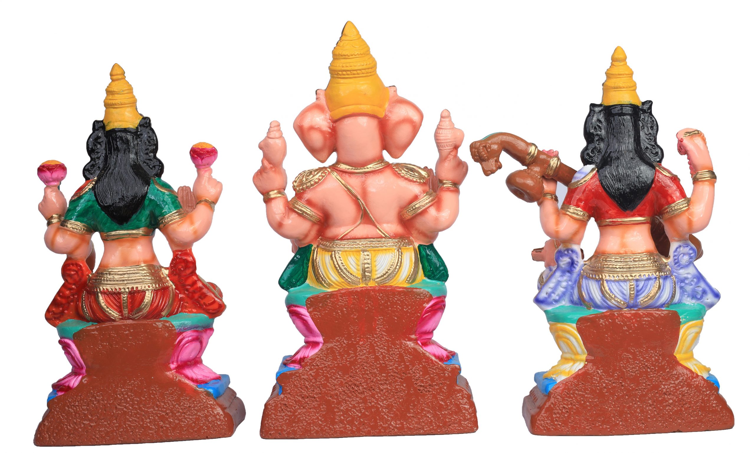 Paper Mache Lakshmi Saraswathi Vinayagar (Set) – 15 inches | Handcrafted Divine Trio