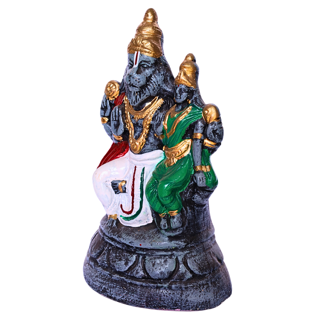 - Material: Crafted from high-quality Paper Mache, this statue is lightweight yet sturdy. The smooth finish and vibrant detailing bring out the divine characteristics of Narasimha and Lakshmi, from Lord Narasimha’s fierce lion features to Goddess Lakshmi’s graceful posture and rich attire.