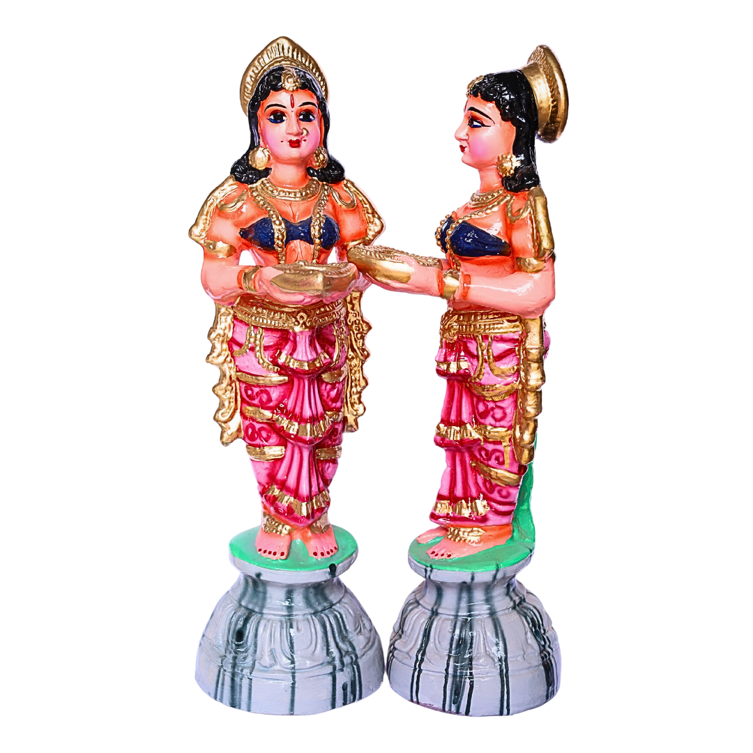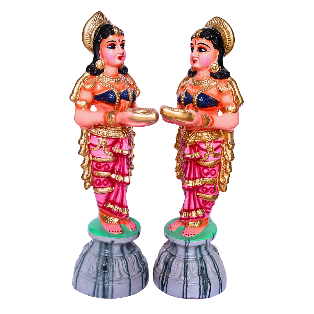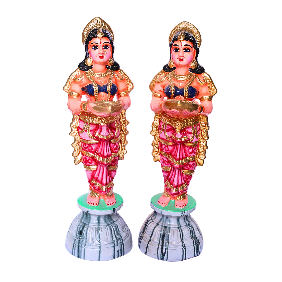 - Handcrafted Excellence: Each Paavai Vilakku is meticulously handmade by skilled artisans, ensuring that every piece is unique. The Paper Mache technique allows for delicate designs and vibrant finishes, ensuring that each lamp is as much a work of art as it is a spiritual tool.