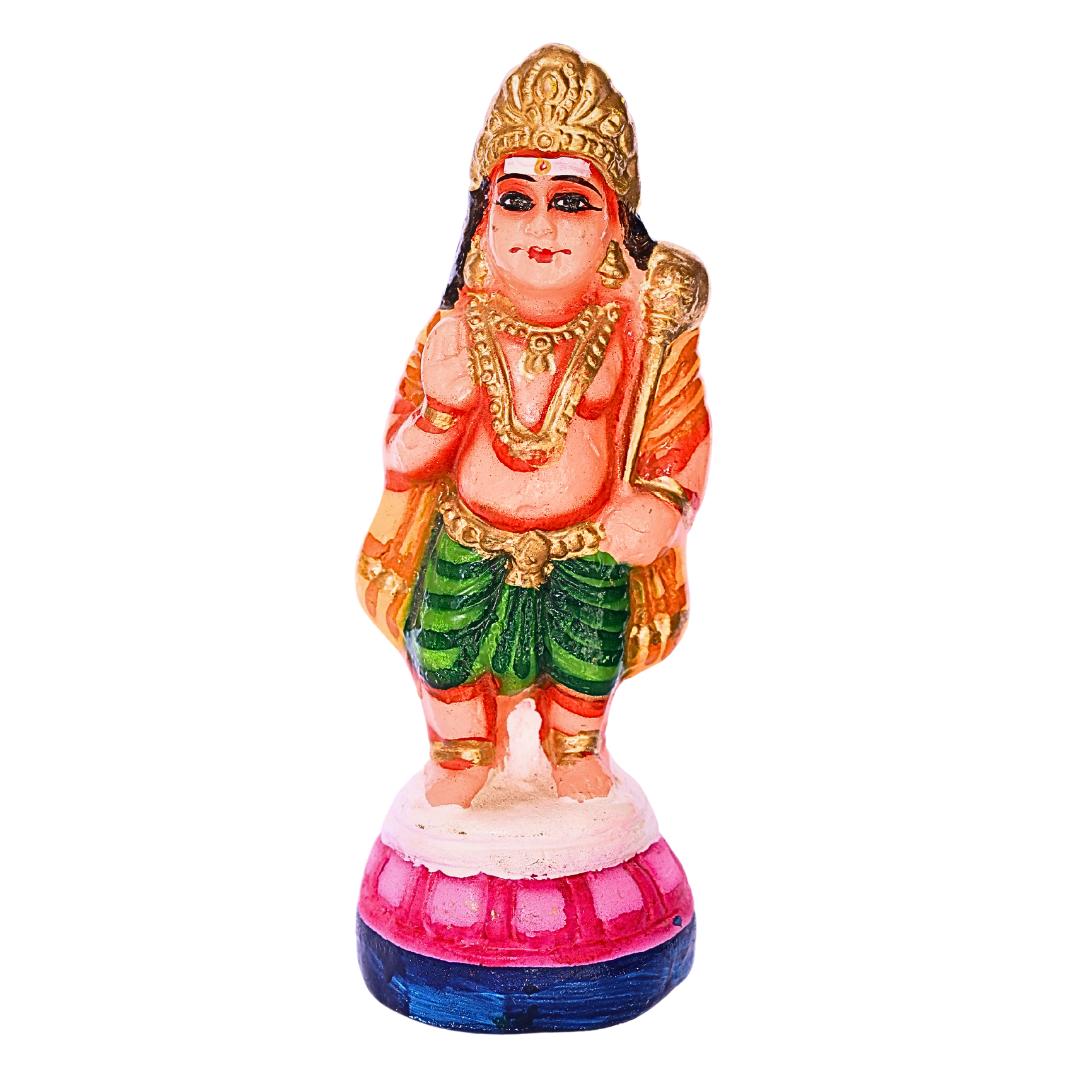 Celebrate the divine blessings of Lord Ganesha, the remover of obstacles and the bringer of wisdom, prosperity, and success, with this exquisite 2-inch Paper Mache Vinayagar Statue. Handcrafted from premium Paper Mache, this statue depicts Lord Ganesha in his traditional form, with his elephant head, round belly, and four arms holding his signature attributes: the modak (sweet), the axe, the lotus, and the rosary. The intricate details and vibrant colors make this statue a perfect addition to your pooja room, home altar, or temple.
