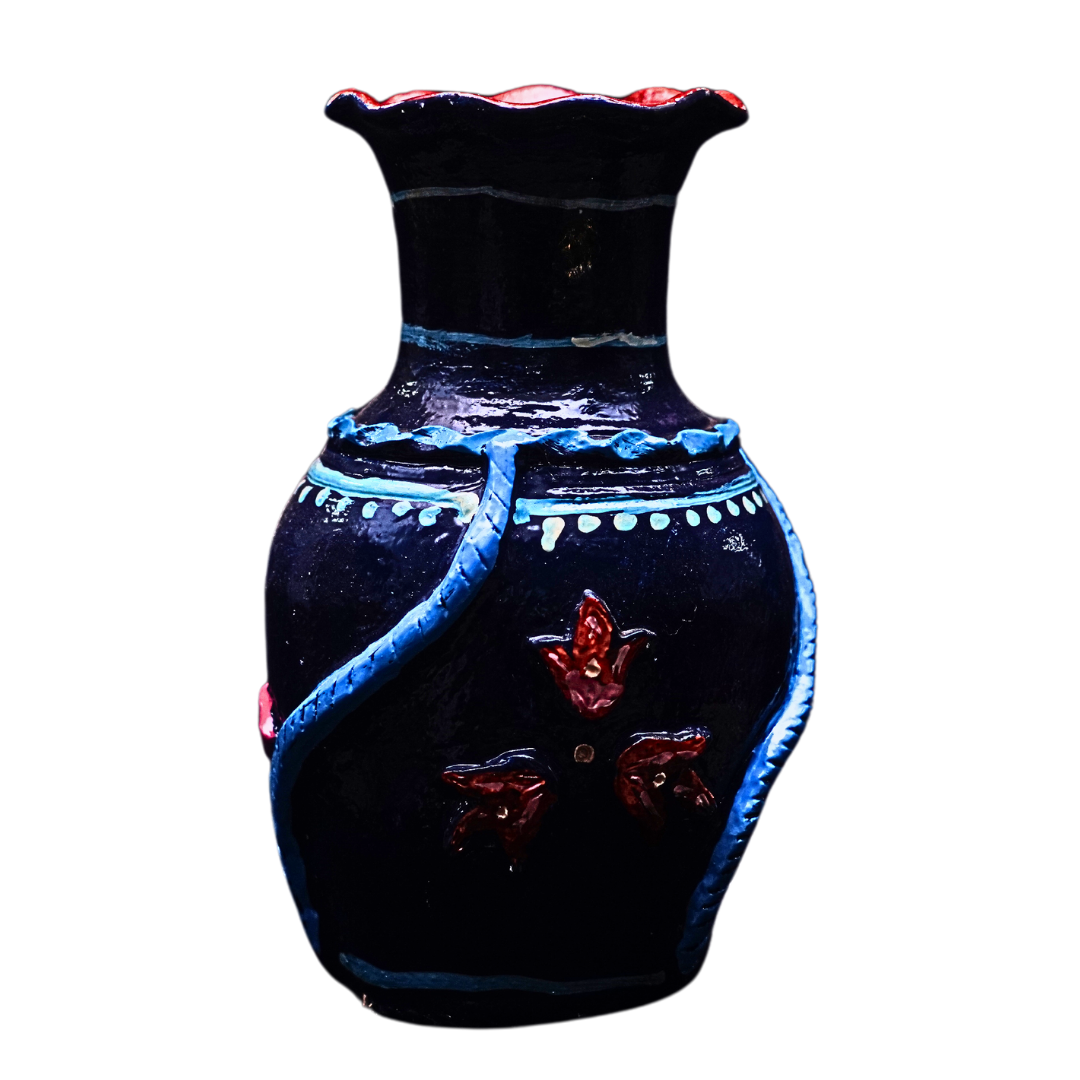 Add a touch of serene charm to your décor with this exquisite blue pottery vase – where elegance meets functionality.