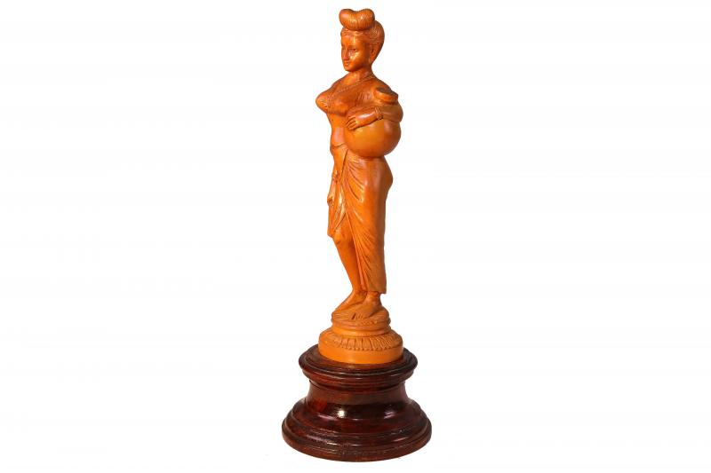 - Design: The Sandalwood Lady with Pot Figurine features intricate craftsmanship, depicting a woman in traditional attire gracefully balancing a pot. The detailed design showcases her elegance and cultural heritage, making it a captivating focal point for your decor.