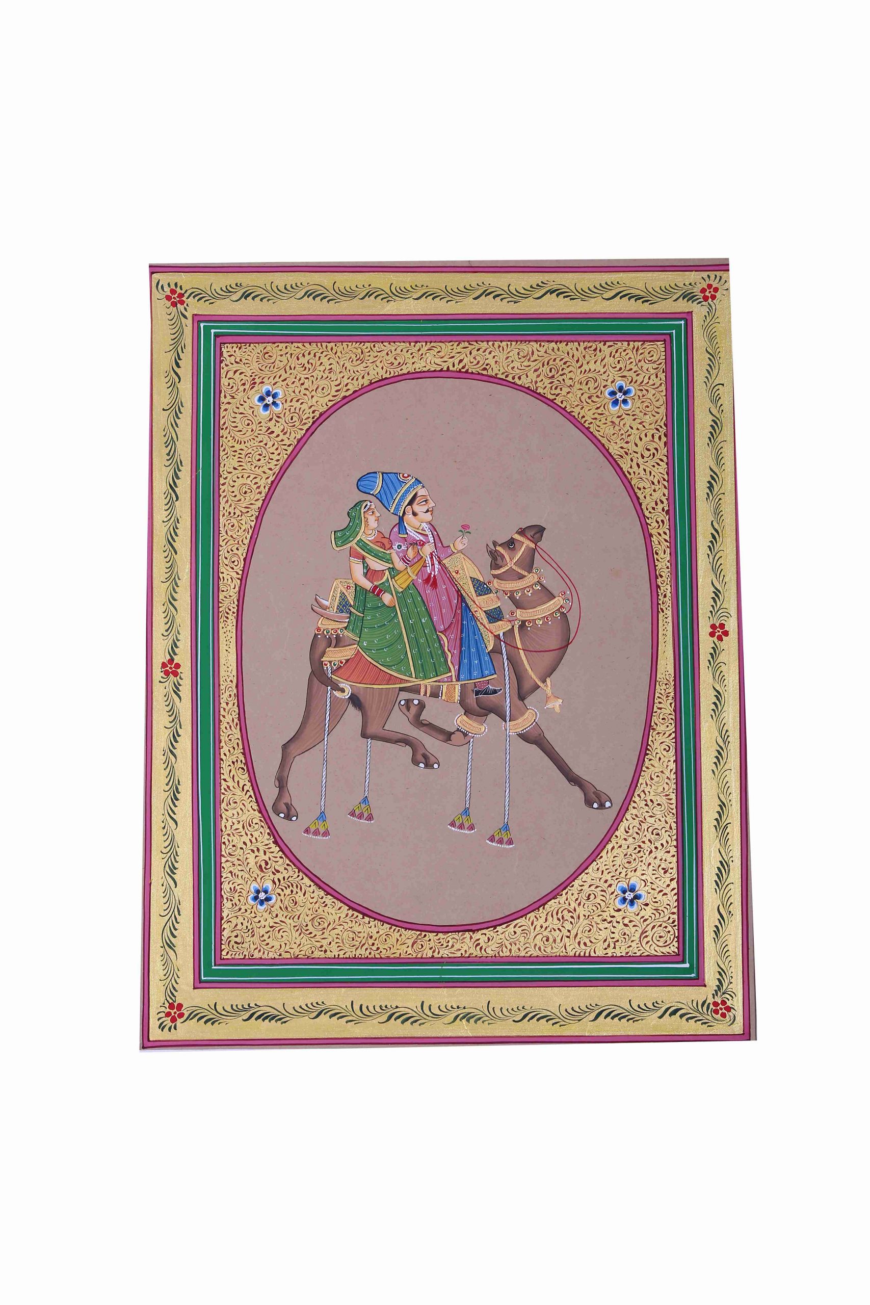 Silk Painting is a delicate and detailed art form where natural silk serves as the canvas, adorned with mythological themes, divine figures, and intricate motifs. The smooth texture of silk enhances the brilliance of colors, creating a mesmerizing visual appeal.