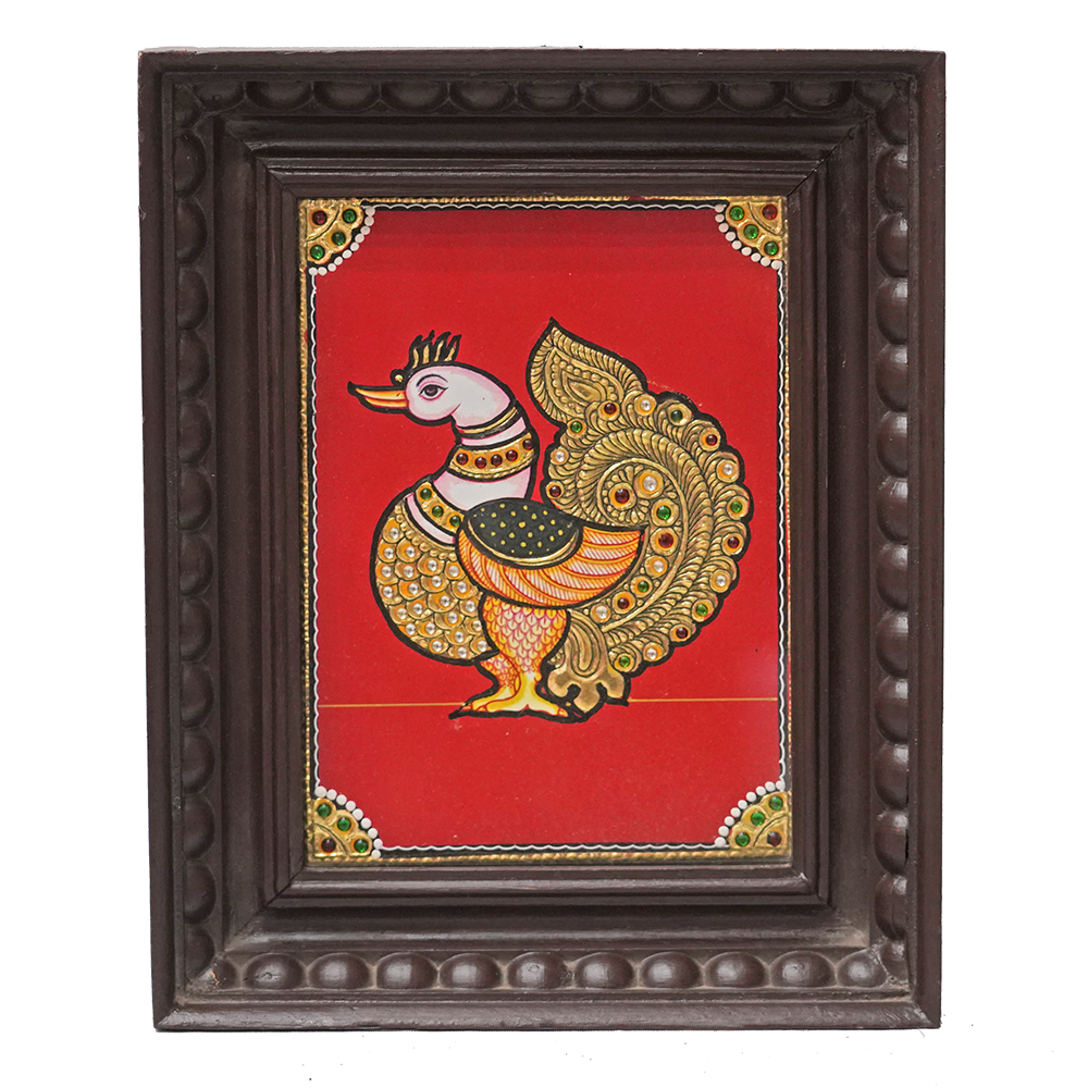 Bring a touch of tradition and elegance to your decor with this exquisite 8-inch Tanjore painting of Annam (the divine swan), symbolizing purity and spiritual wisdom. This stunning artwork captures the intricate details and rich colors characteristic of Tanjore art, making it a perfect addition to your home or a thoughtful gift for loved ones.