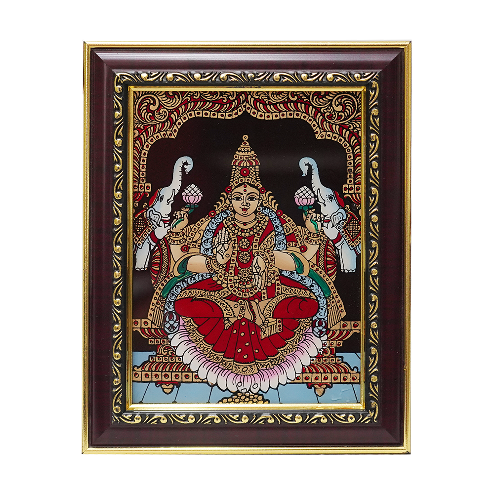• Unique Craftsmanship: Each piece is meticulously crafted by skilled artisans, ensuring unique details and rich colors that bring Gajalakshmi to life.