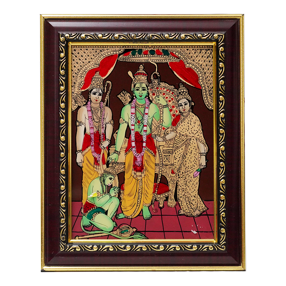 Invite the blessings of Kothanda Ramar into your home with this exquisite 8-inch glass painting, a timeless piece that radiates spirituality and artistic brilliance.