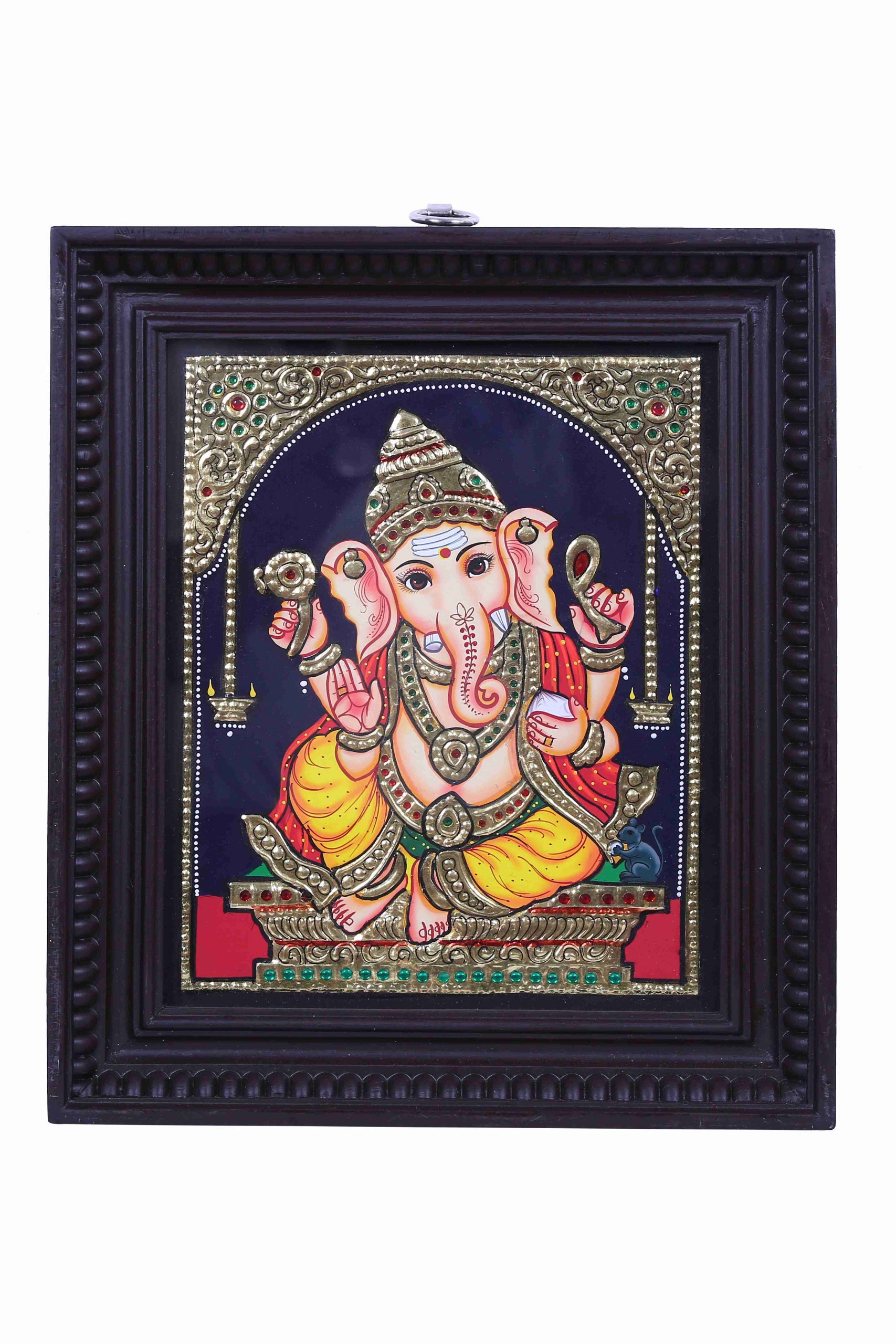 Bring home divine charm and timeless artistry with this exquisite Tanjore Painting of Lord Krishna resting peacefully on a Peepal Leaf, symbolizing cosmic balance and the beginning of life. Hand-painted by skilled artisans using traditional techniques, this artwork features intricate detailing and rich, vibrant colors accentuated with real 22K gold foil—true to the age-old Tanjore painting style.