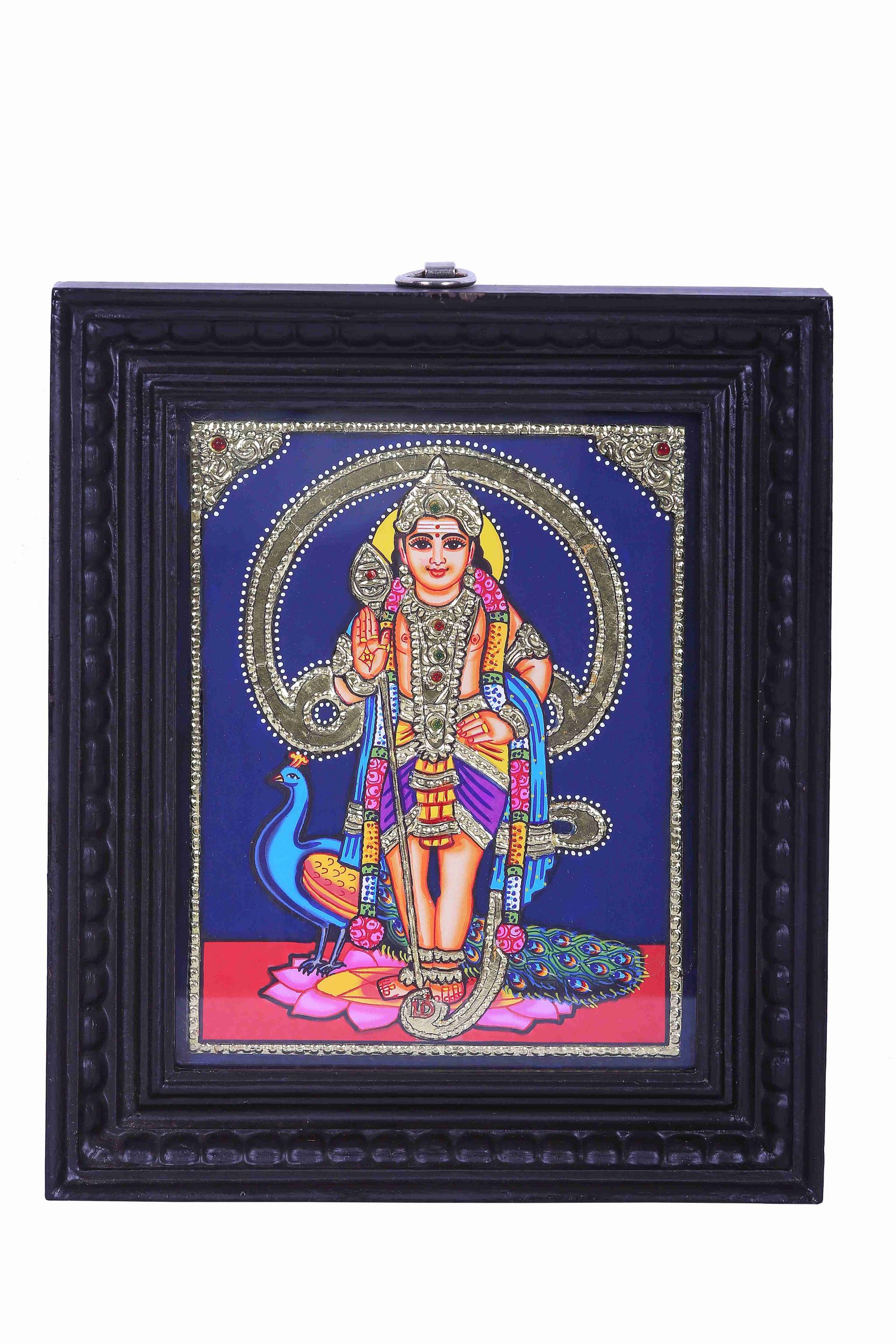 Tanjore Painting of Lord Murugan | Handcrafted South Indian Traditional Art | 22k Gold Foil Detailing | Framed Wall Décor | Ideal for Pooja Room & Gifting