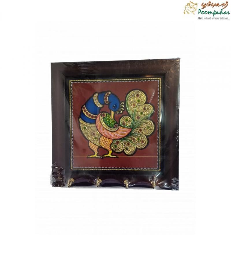 Tanjore Painting Peacock Key Hanger – 7 Inches