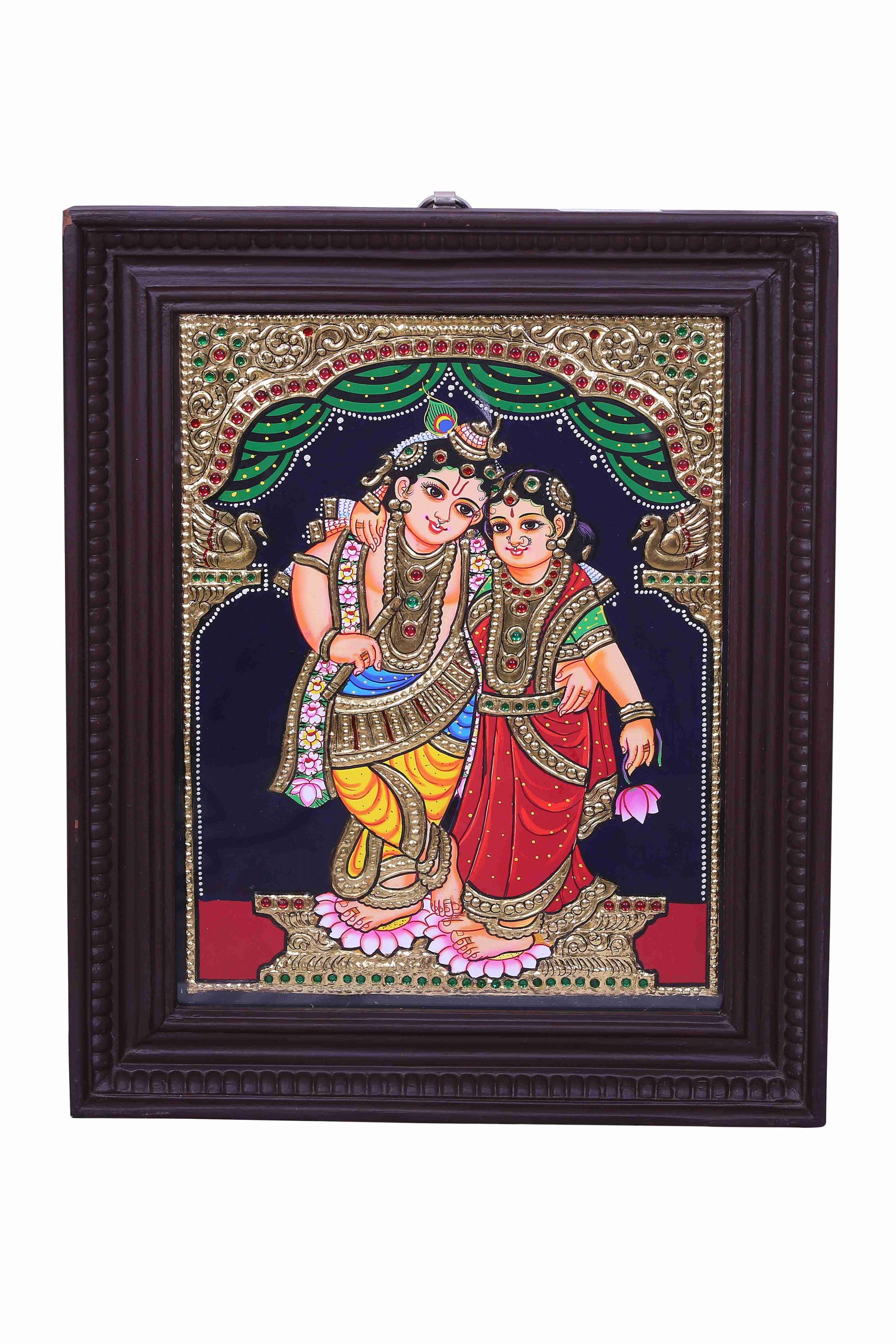 Immerse yourself in divine love with this exquisite Tanjore Painting of Radha and Krishna, a timeless portrayal of spiritual devotion and eternal bond. Crafted in the traditional Tanjore style native to Tamil Nadu, this masterpiece reflects the grandeur of classical South Indian art.