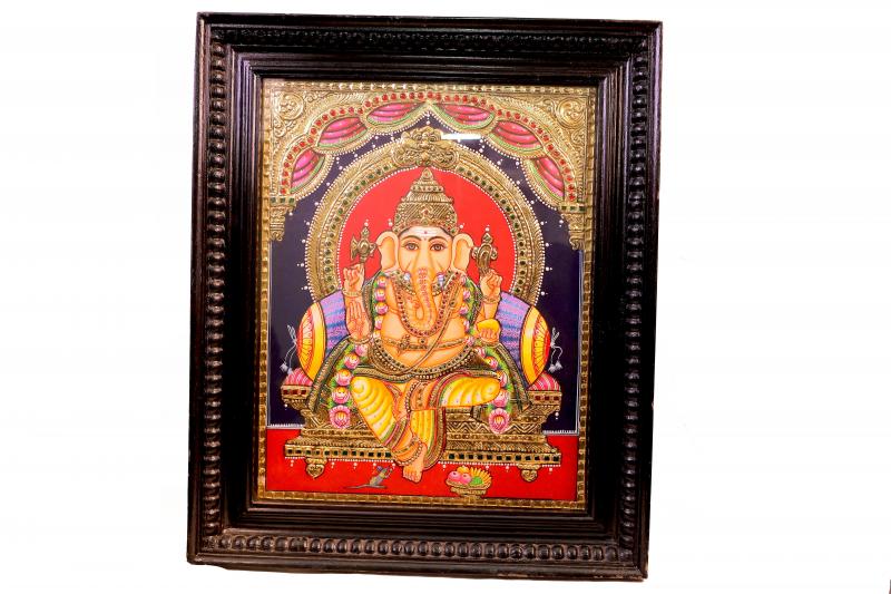 This Tanjore Painting of Ramar Pattabhishekam is more than just a decorative piece; it embodies the ideals of virtue, devotion, and divine kingship. Its vibrant colors and intricate craftsmanship make it a perfect addition to any home, inviting blessings and positivity while celebrating the rich cultural heritage of Indian art.