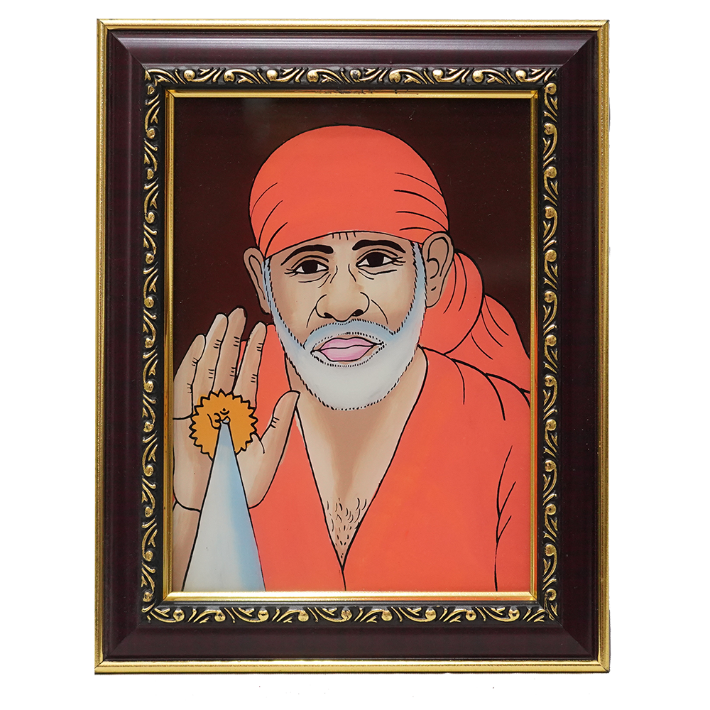 Glass Painting – Sai Baba (8 Inch)