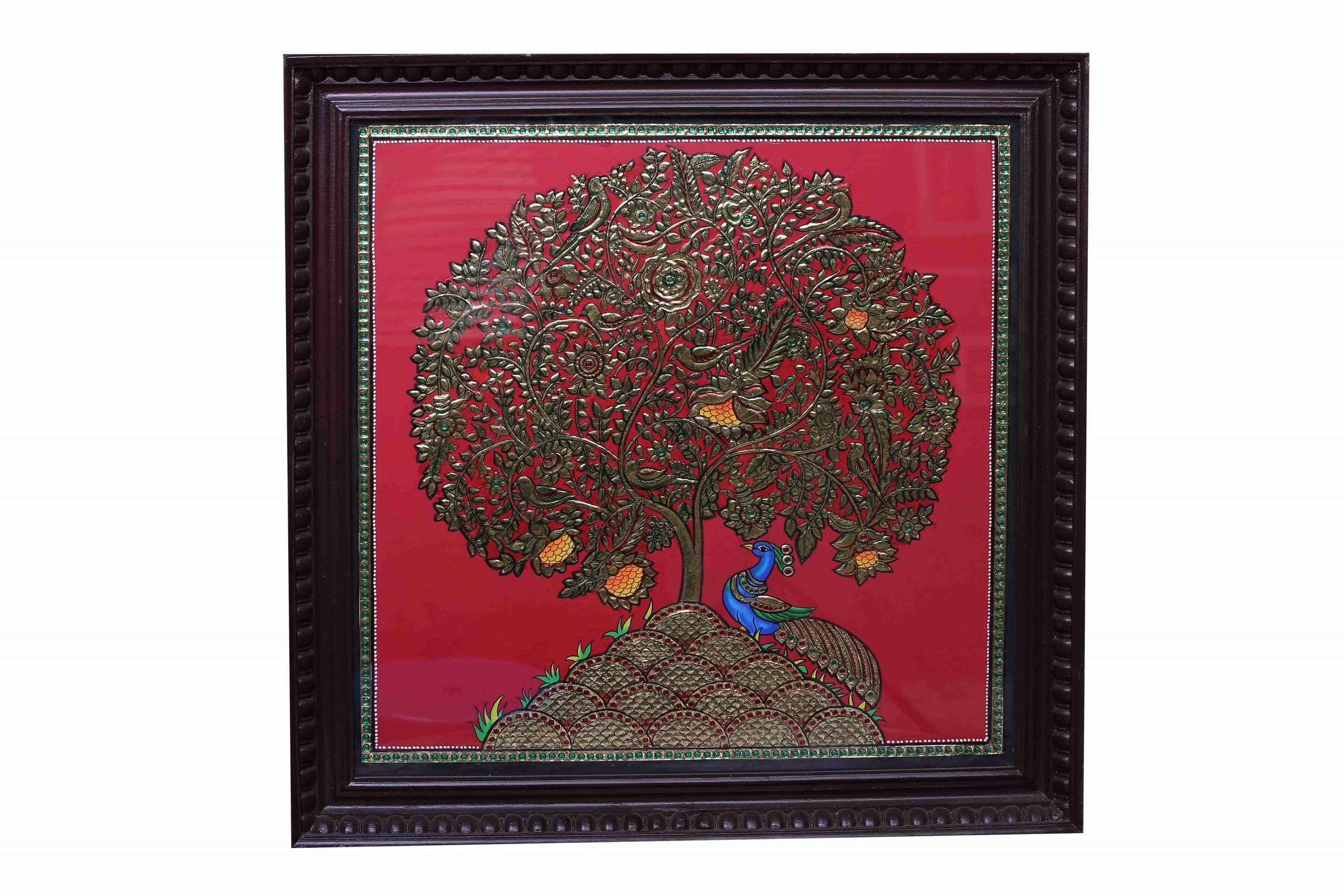 Material Used: 22K Gold Foil, Natural Colors, Plywood Base, Semi-precious Stones