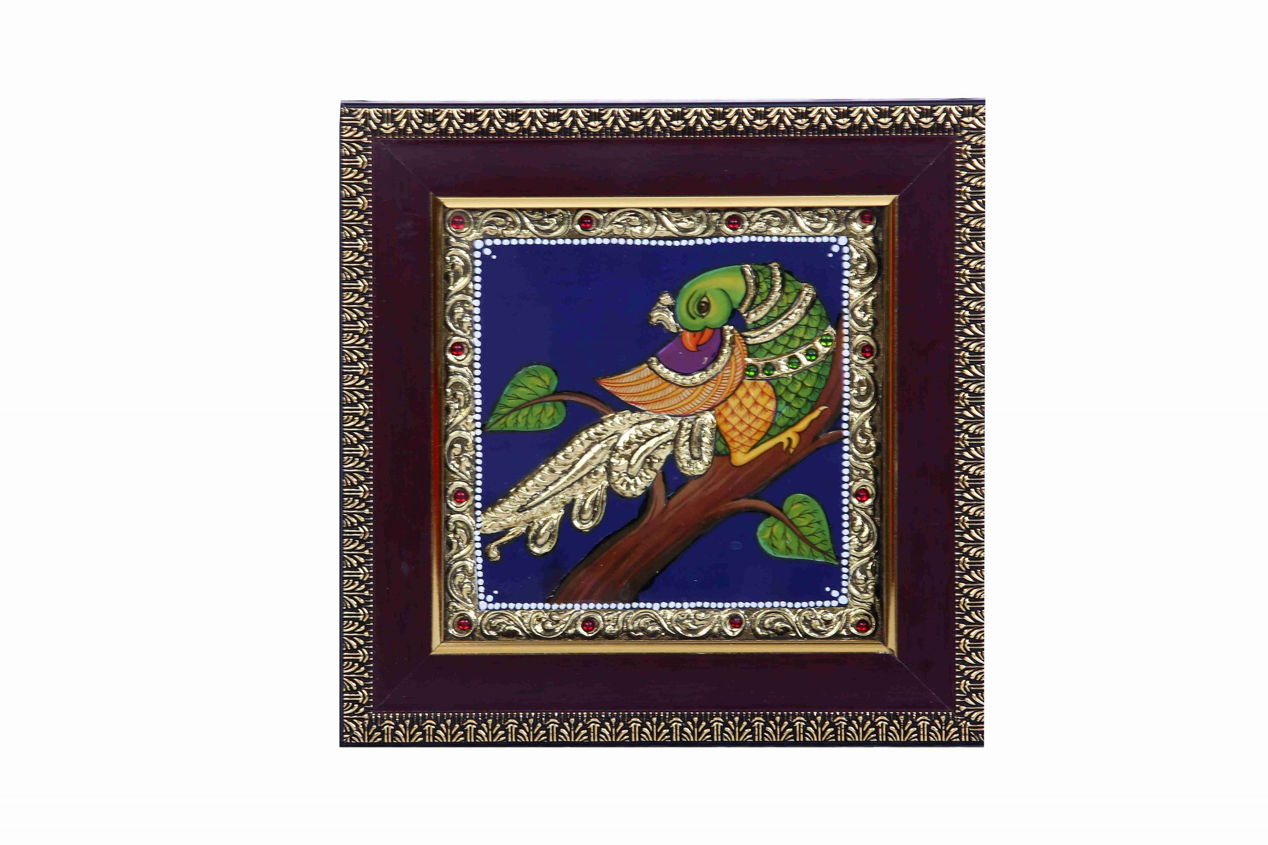 Tanjore Painting – Single Parrot Mount | Traditional Handmade Artwork | Poompuhar
