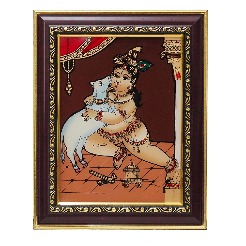 Add a touch of divine charm to your decor with this exquisite 8-inch glass painting of Vinayagar (Lord Ganesha), the remover of obstacles and the deity of wisdom and prosperity. This stunning artwork is perfect for enhancing your spiritual space or as a thoughtful gift for loved ones.