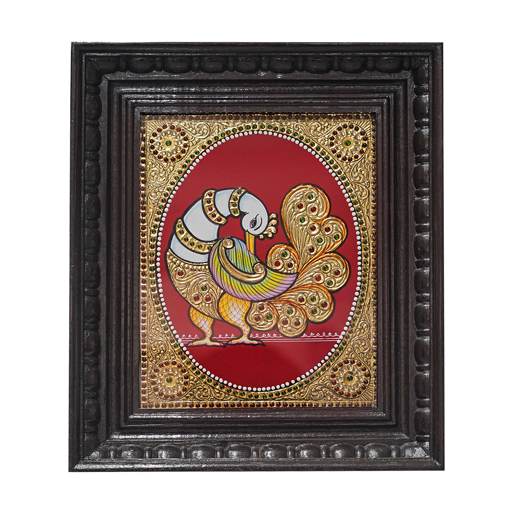 This Tanjore painting of a White Peacock is not just a beautiful artwork; it brings a sense of grace and tranquility to your home, making it a cherished addition to any art collection or a meaningful gift for loved ones.