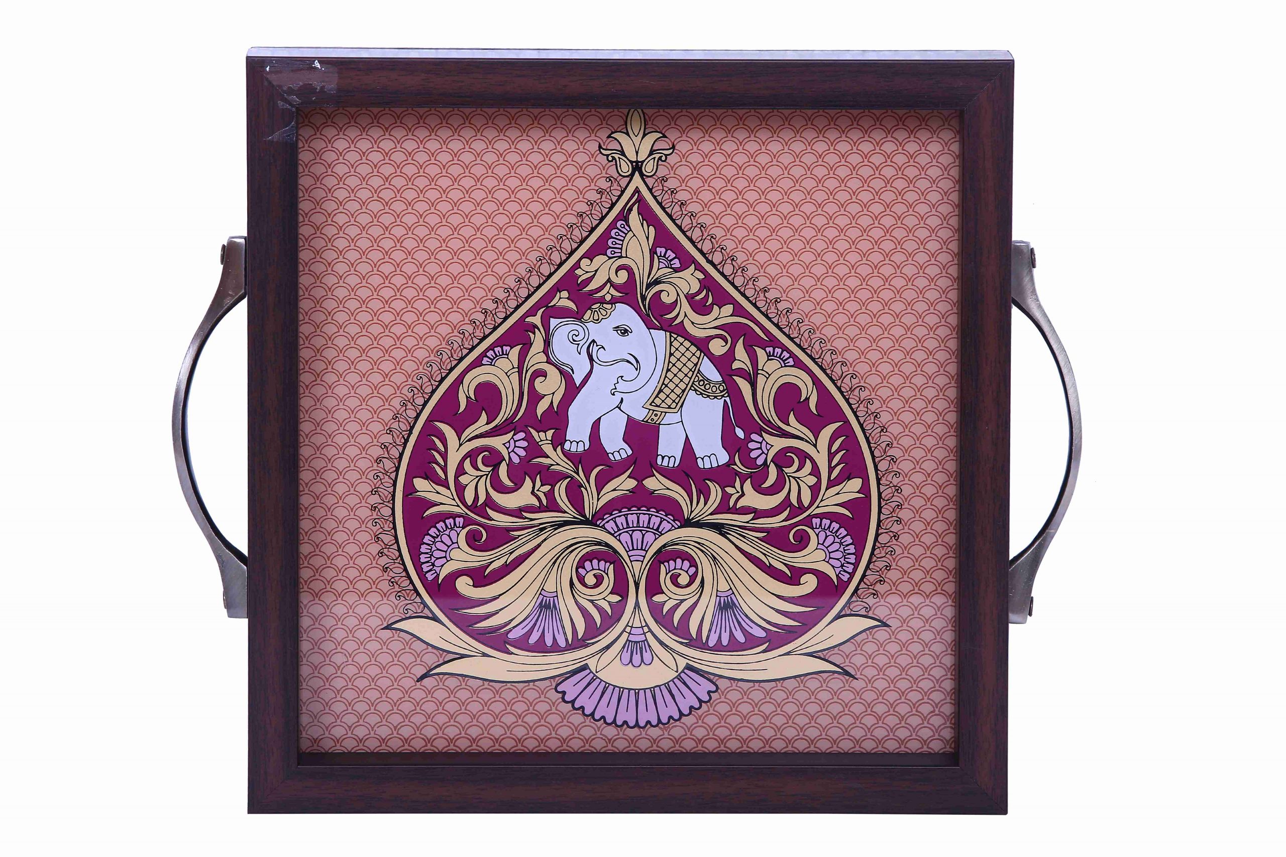 Tanjore Reverse Glass Painting Decorative Tray | Handcrafted Traditional Art | Multi-utility Serving Tray | Ethnic Home Décor