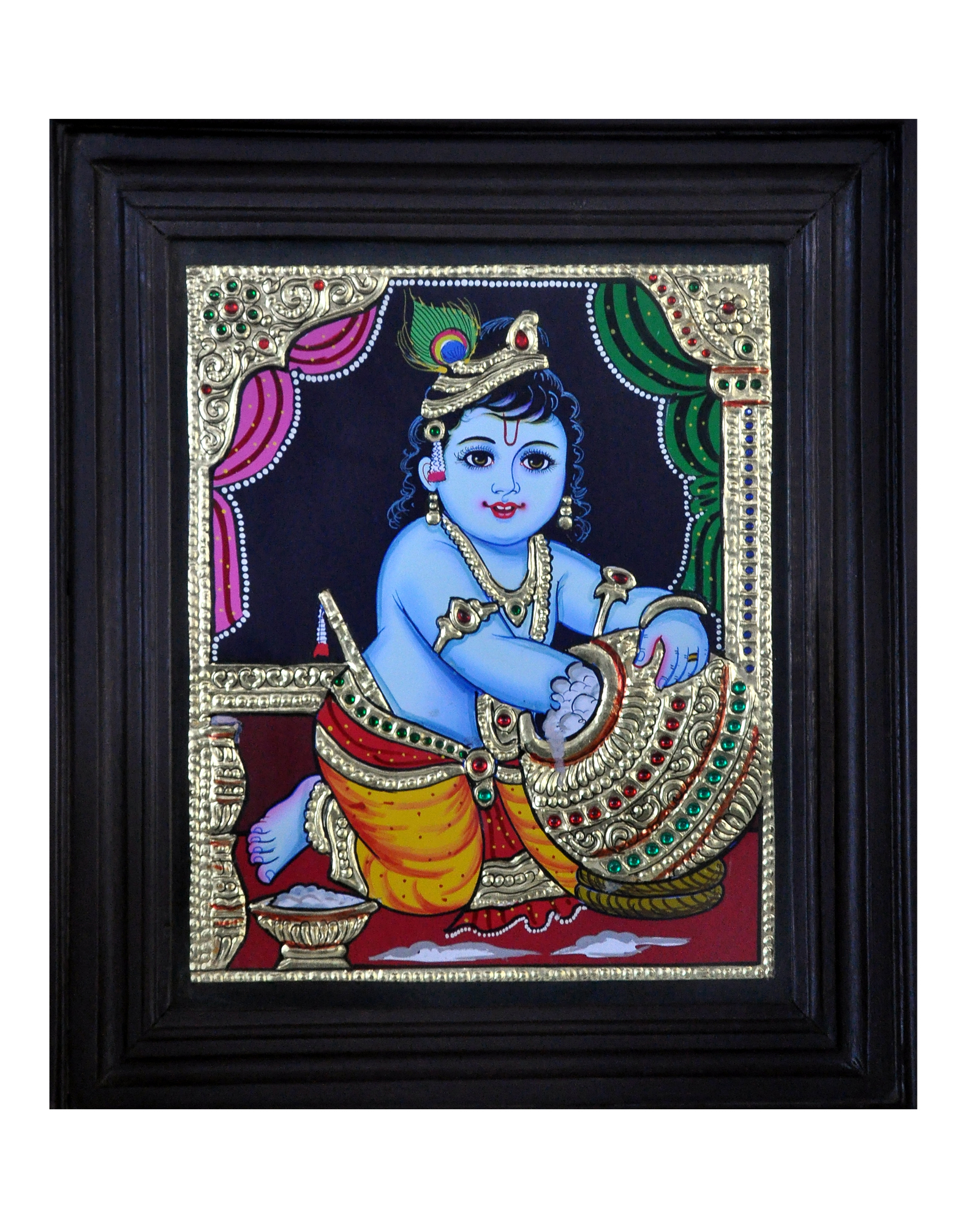 Thanjavur Painting of Pot Krishna (10-inch, Embossed)
