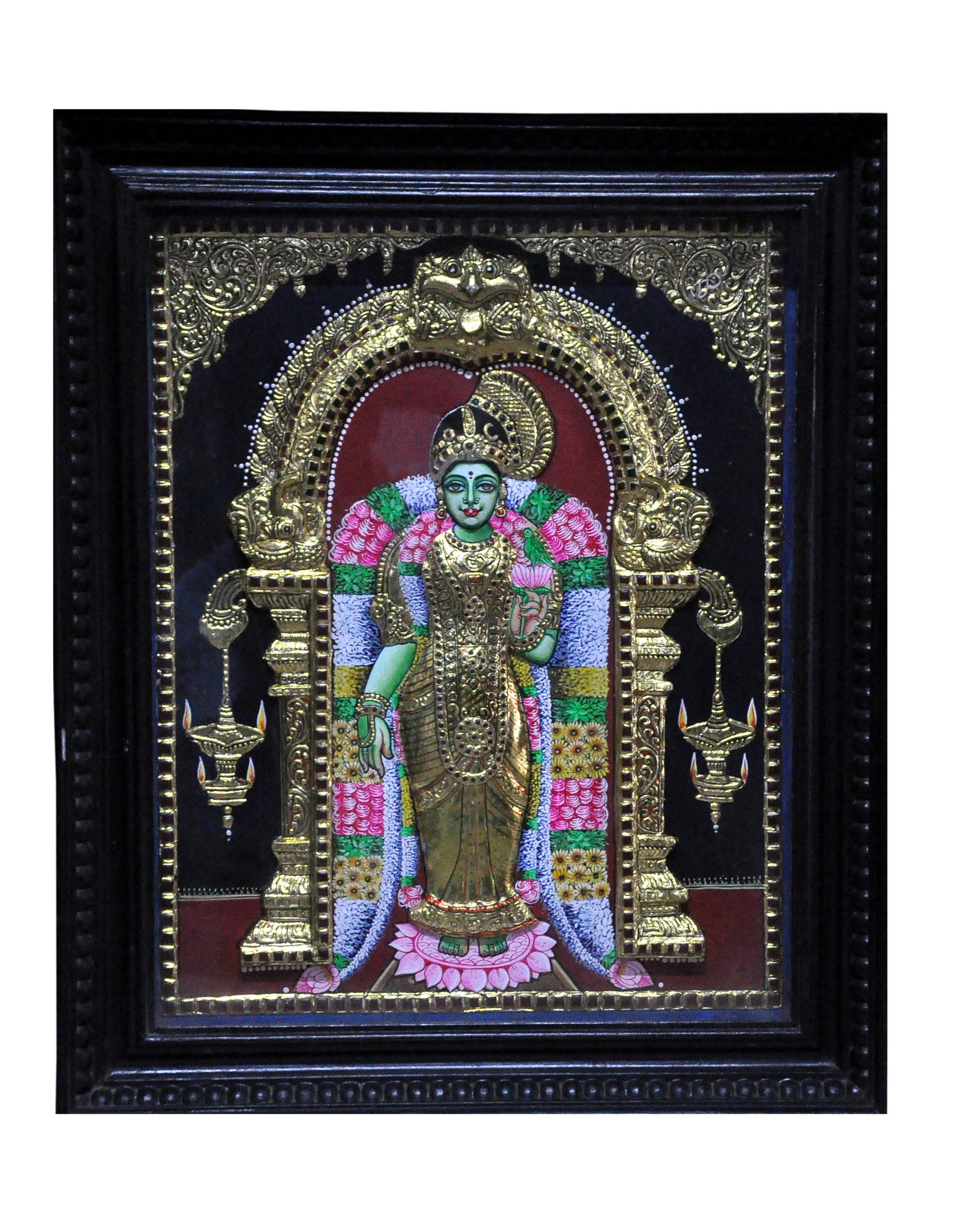 Bring home the charm of divine playfulness with this exquisite 10-inch Thanjavur painting of Pot Krishna. Renowned for its intricate craftsmanship, this artwork features stunning embossed details and shimmering gold foil accents, beautifully capturing the essence of Lord Krishna’s mischievous spirit.