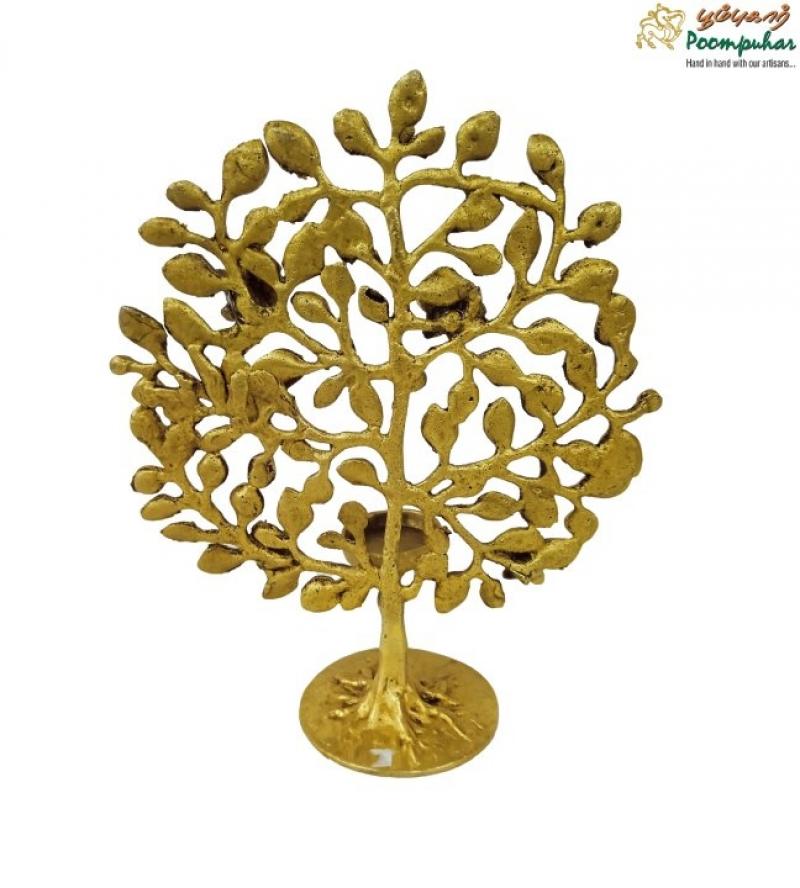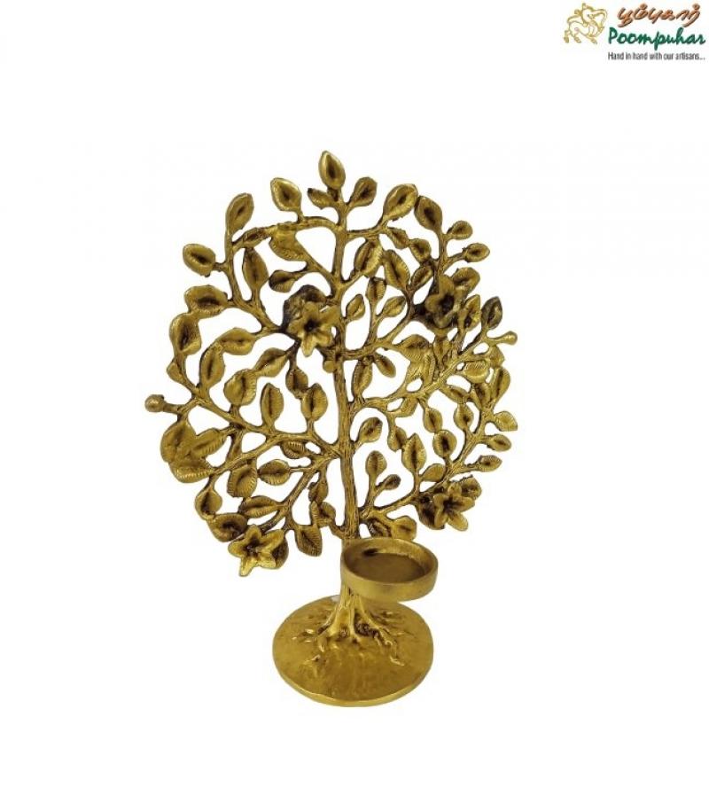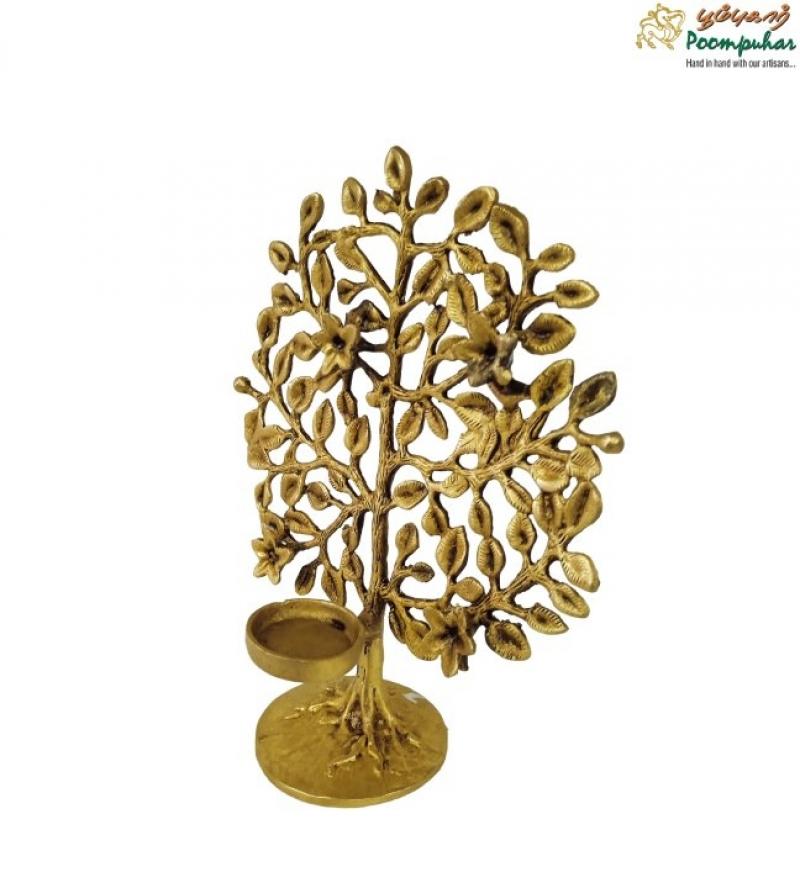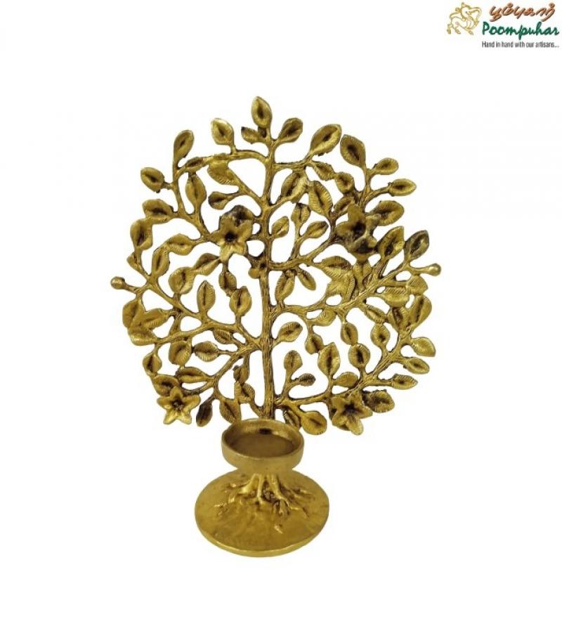 Brass Tree with Candle Stand – 9-inch Handcrafted Décor