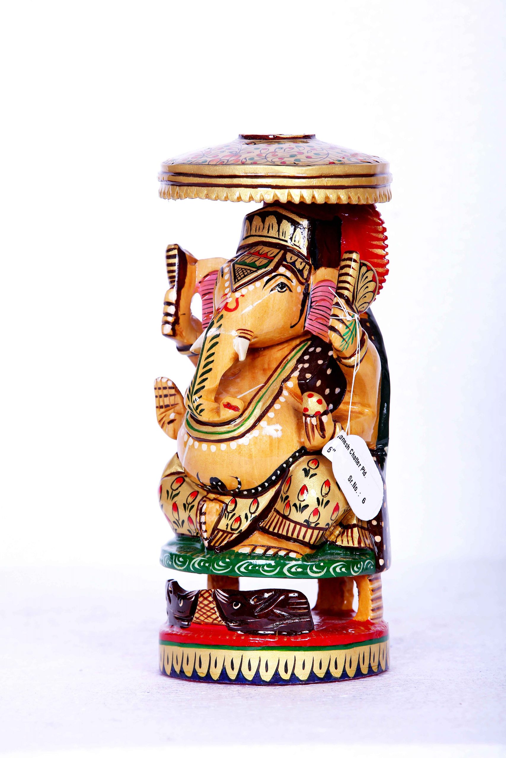 Invite blessings and positive energy into your space with this beautifully crafted White Wood 8 Inch Ganesh Chatter.