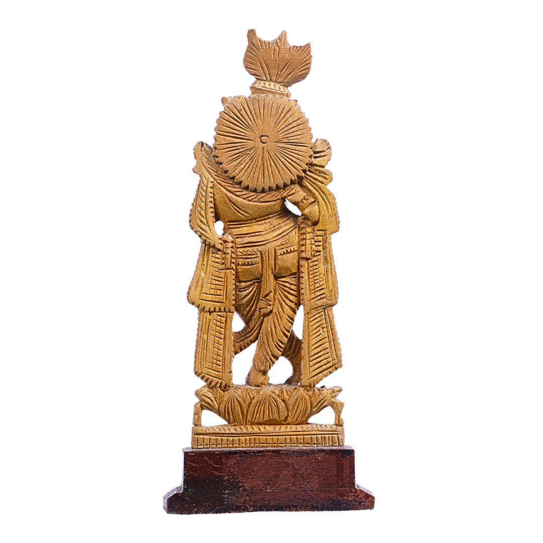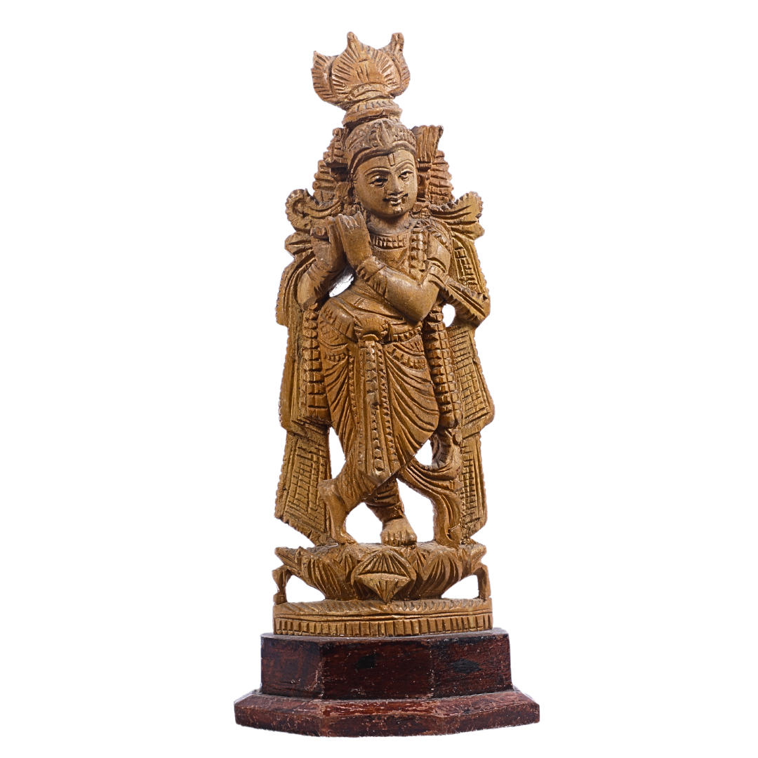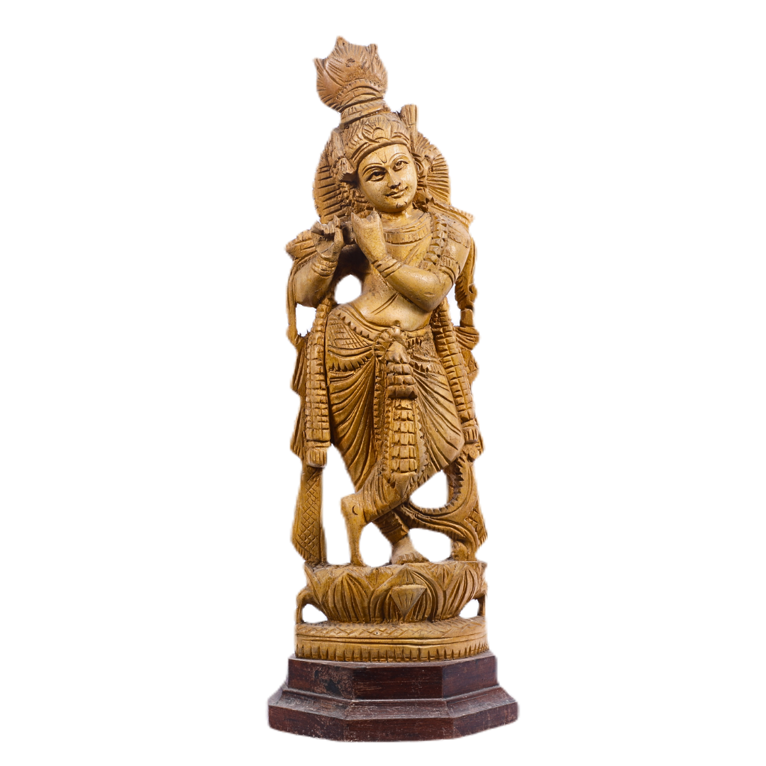 - Design: The statue beautifully portrays Lord Krishnan playing his flute, with a joyful and serene expression. His graceful posture, adorned attire, and iconic peacock feather are meticulously carved, reflecting the divine playfulness and wisdom of Krishnan.
