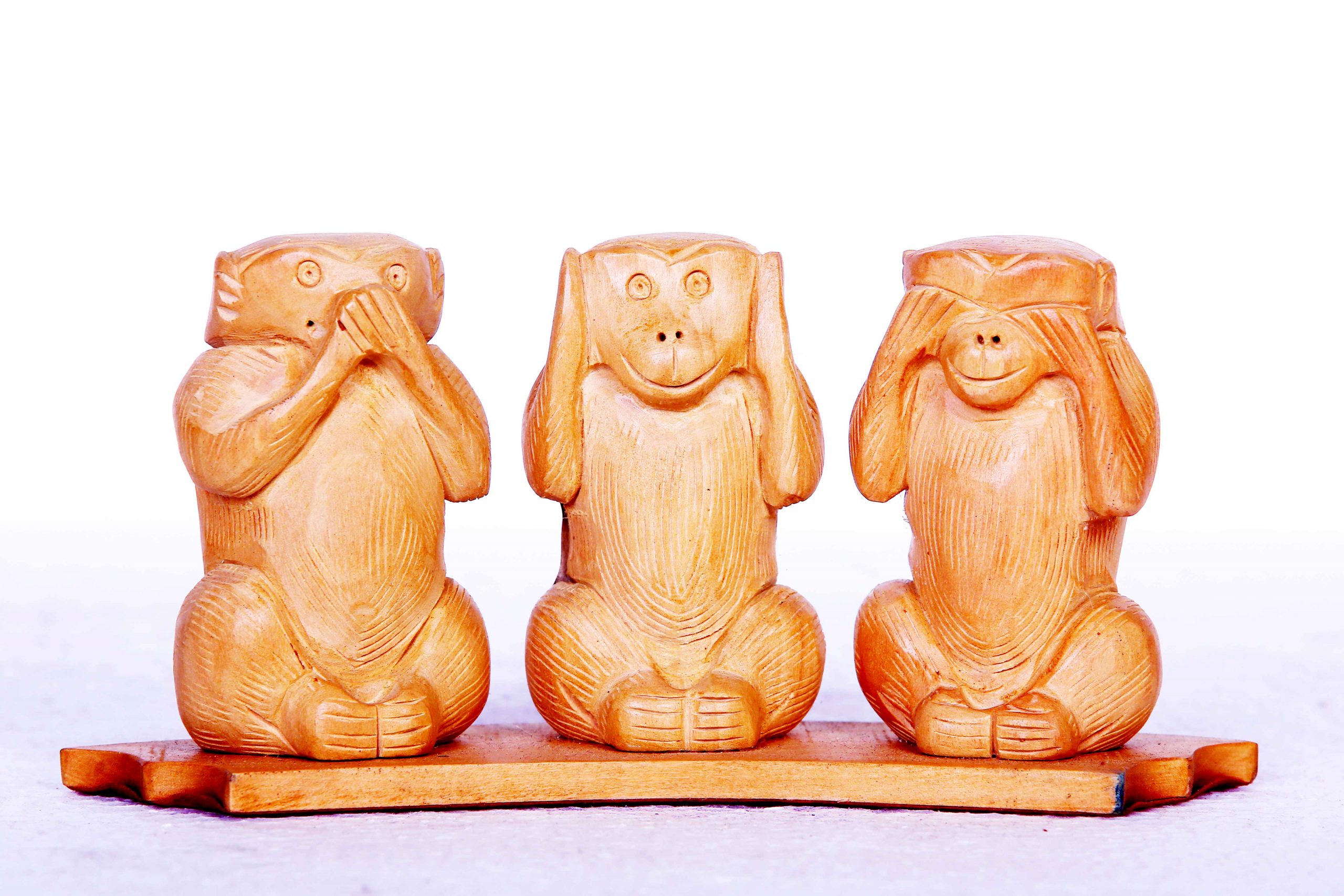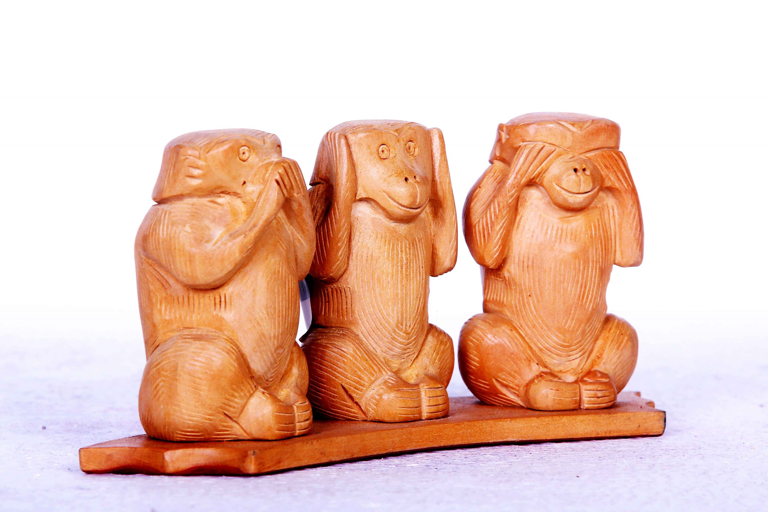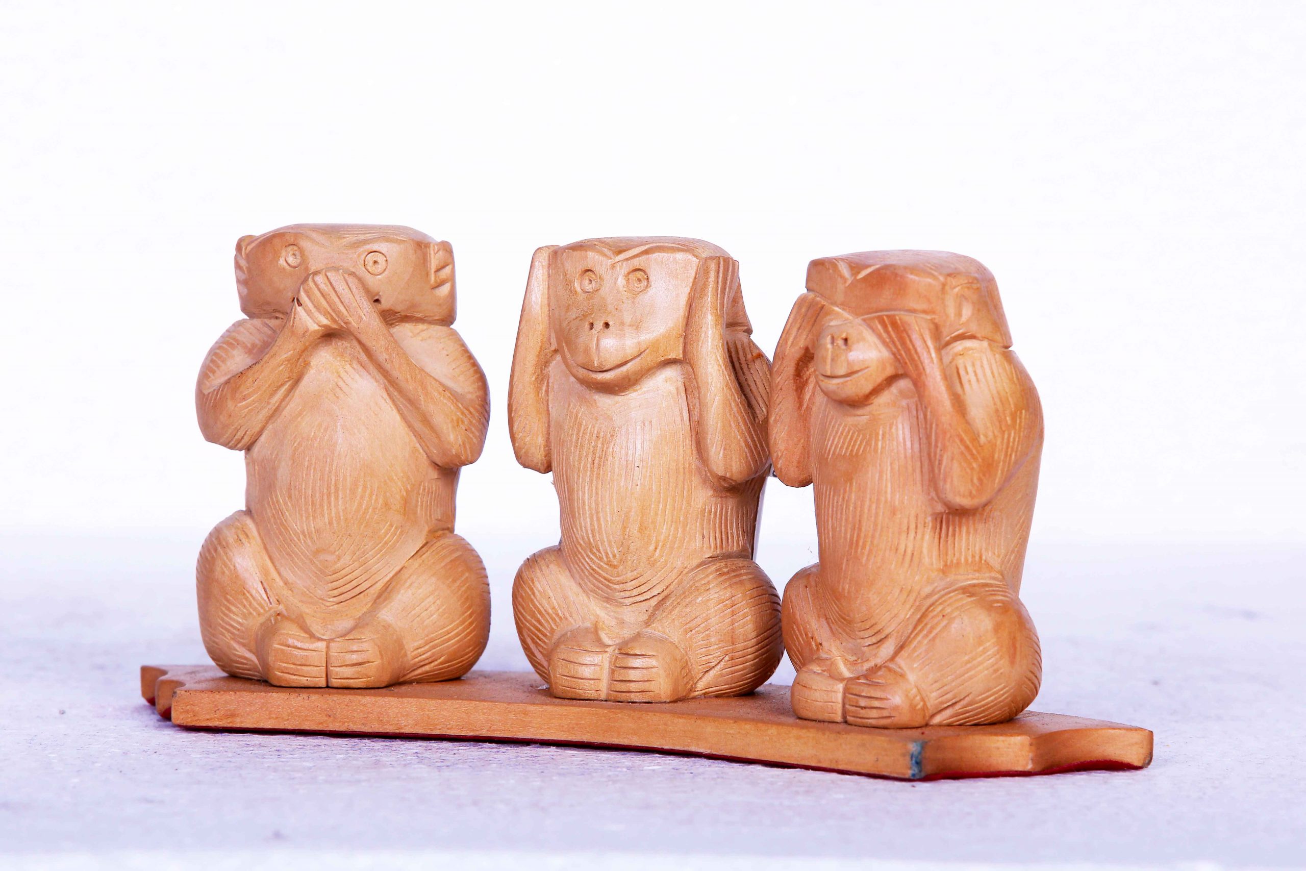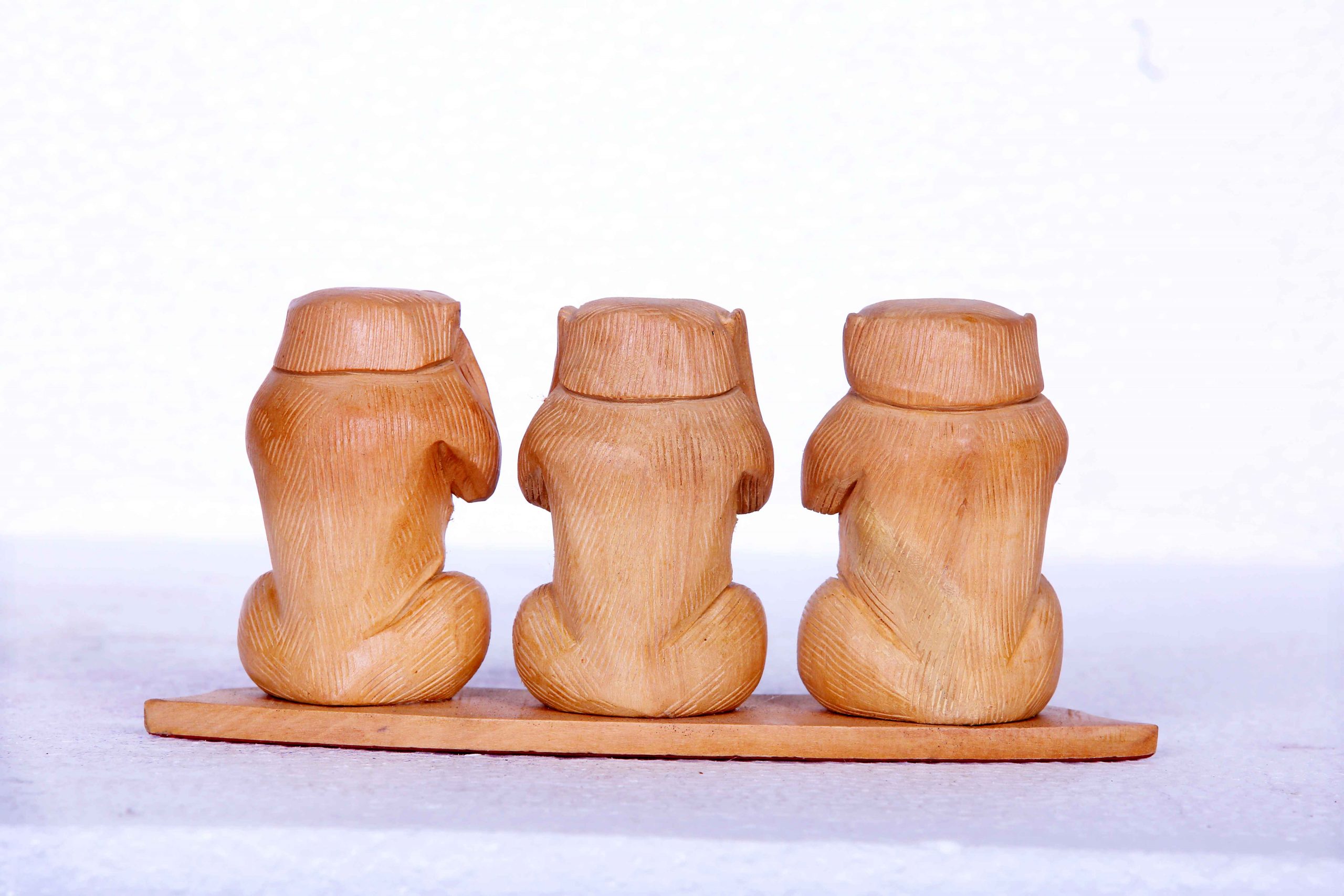 White Wood Monkey Set (Handcrafted, Decorative Figurines)
