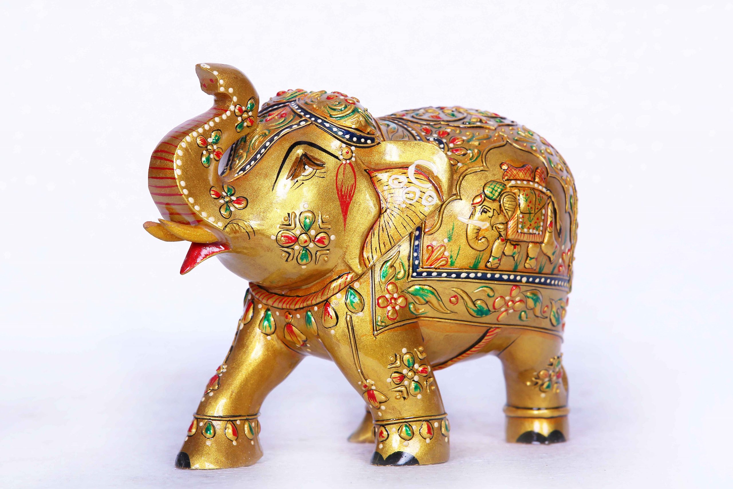 - Design: Detailed elephant figurine with intricate embossed patterns