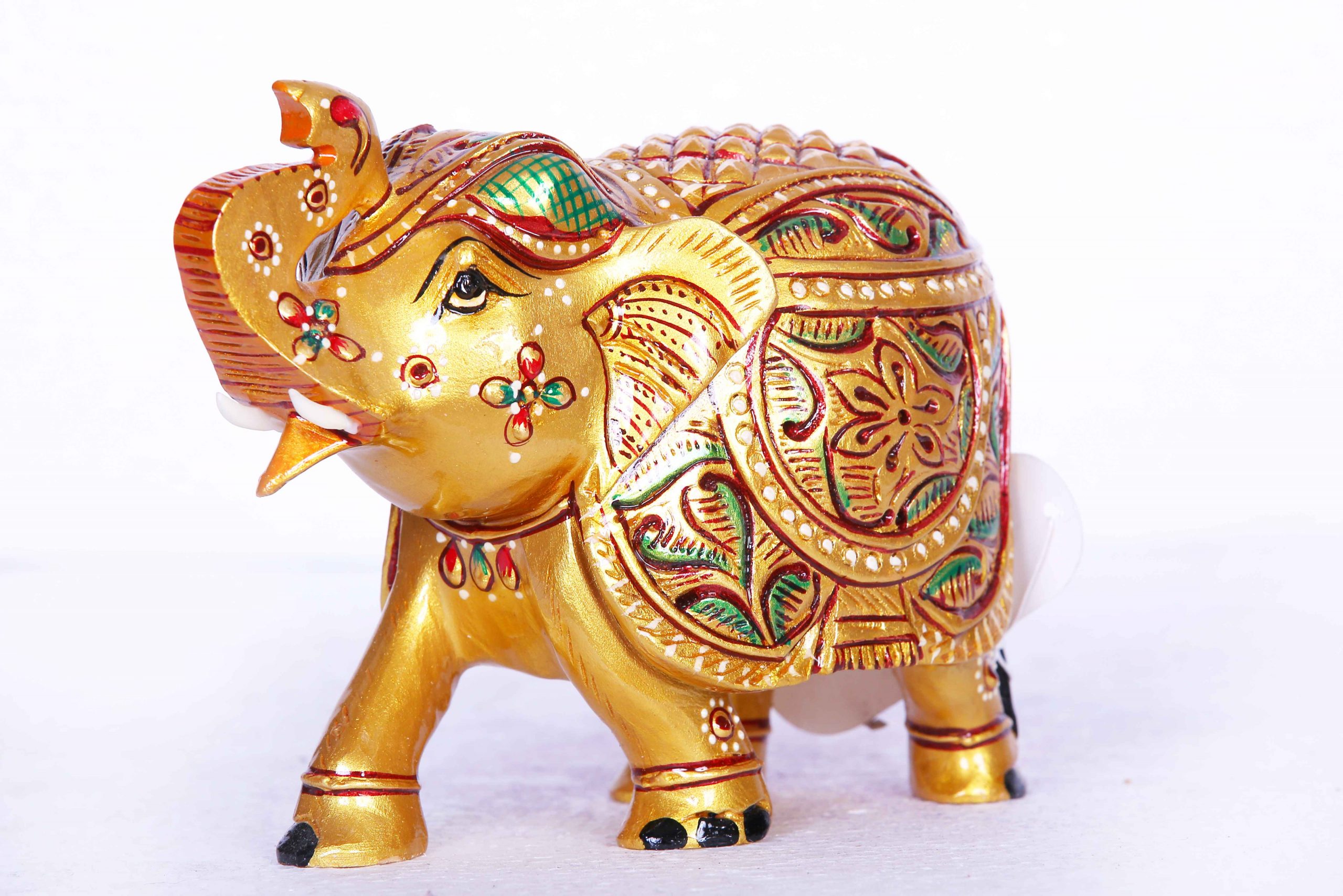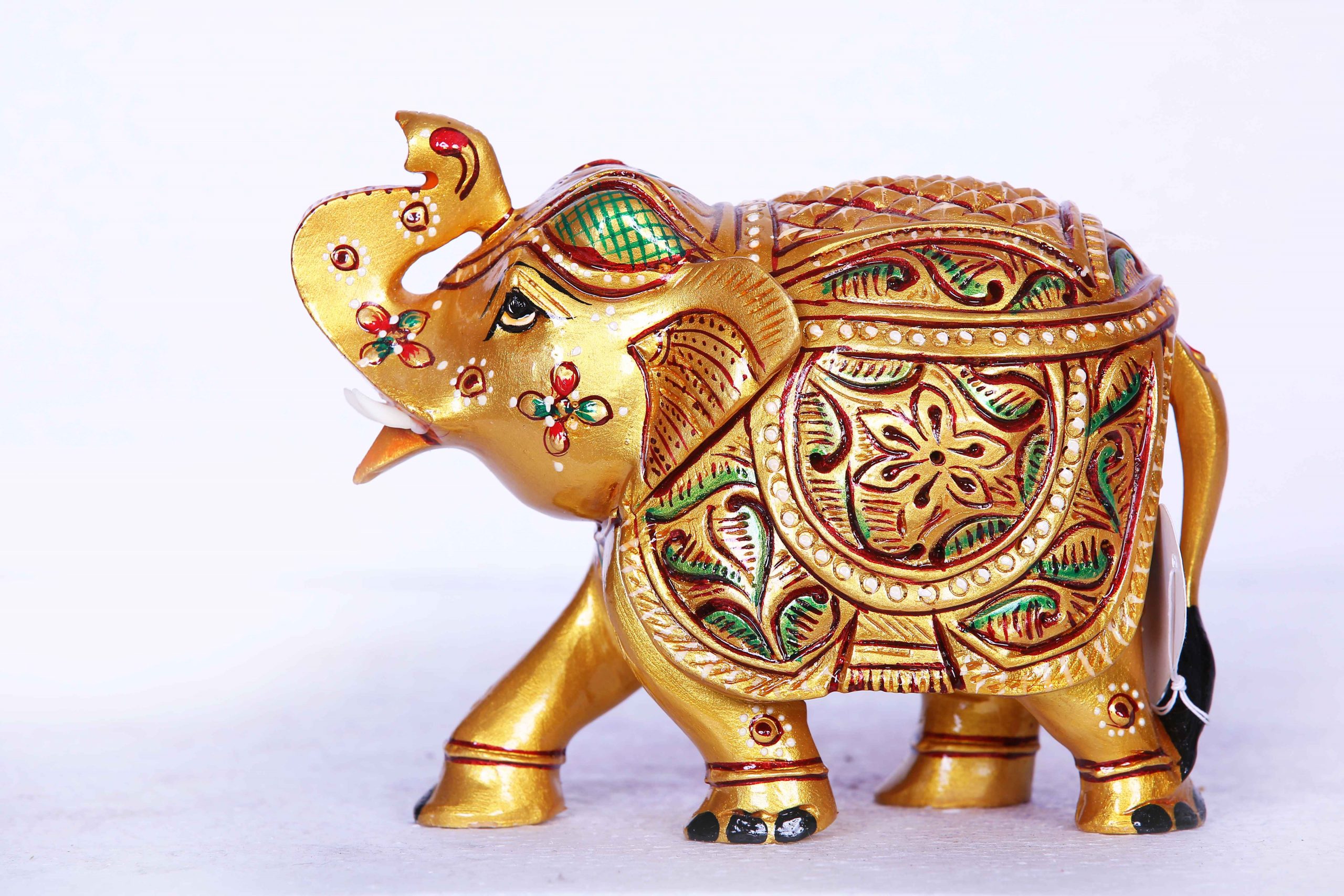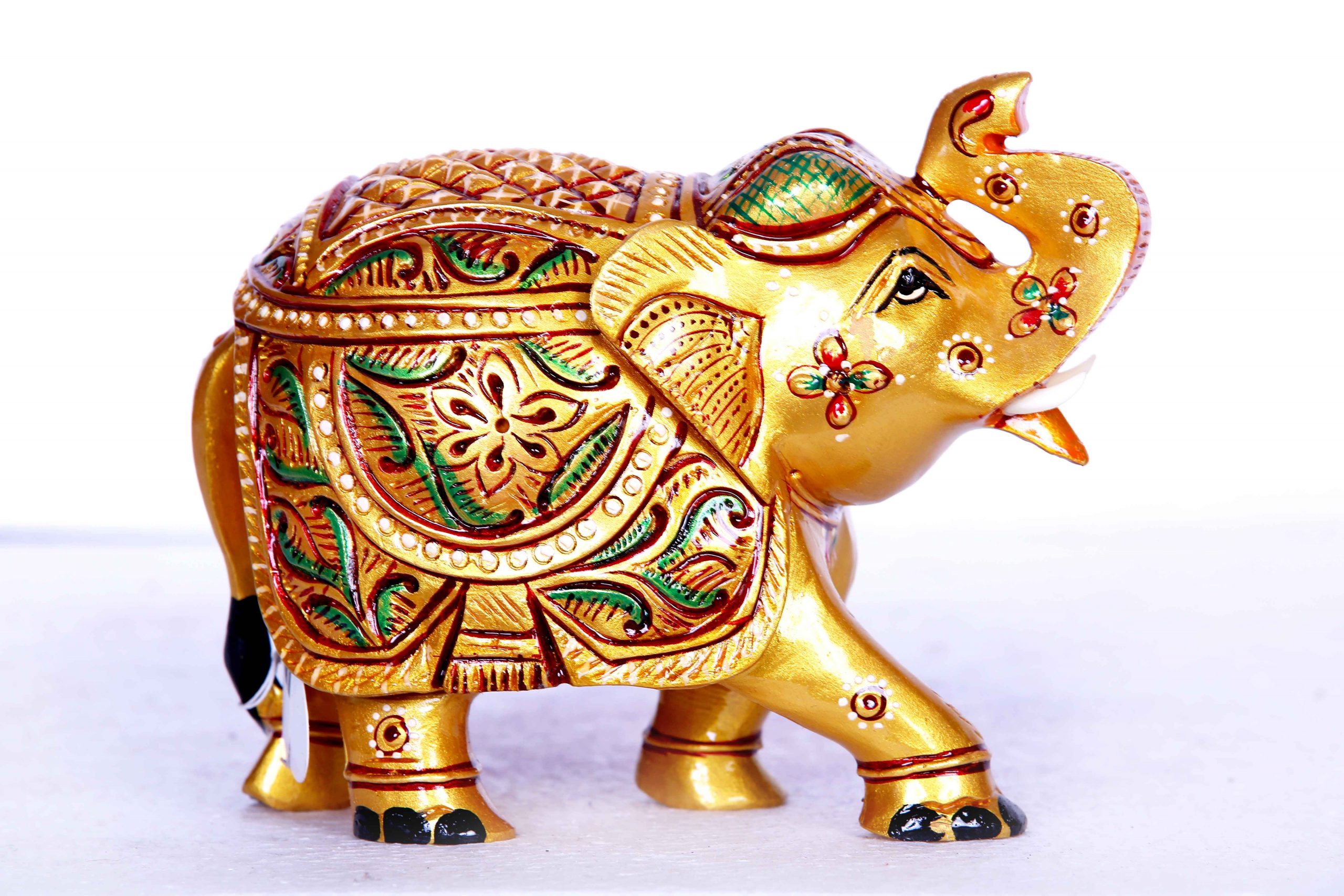 - Design: Features a regal elephant adorned with traditional motifs