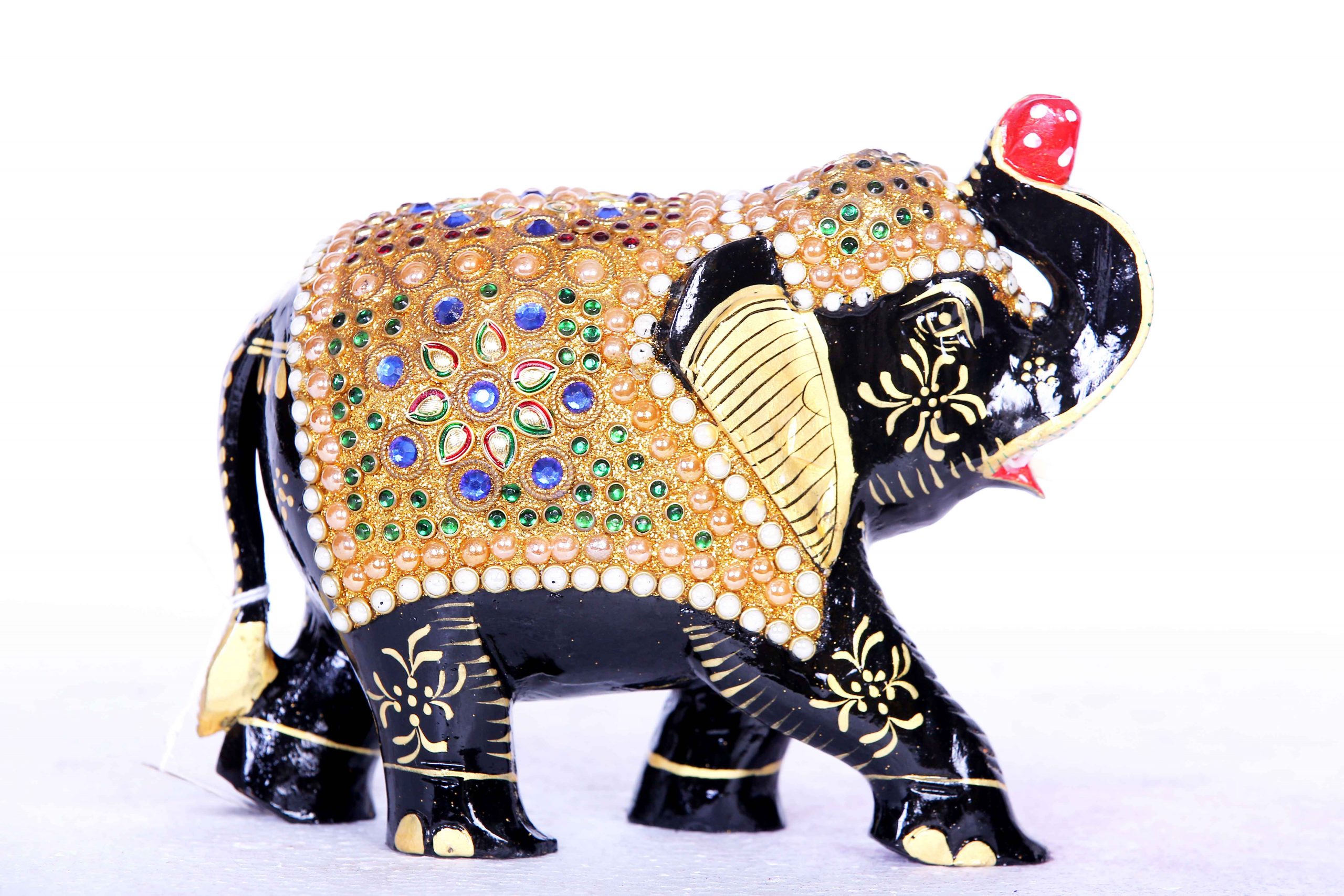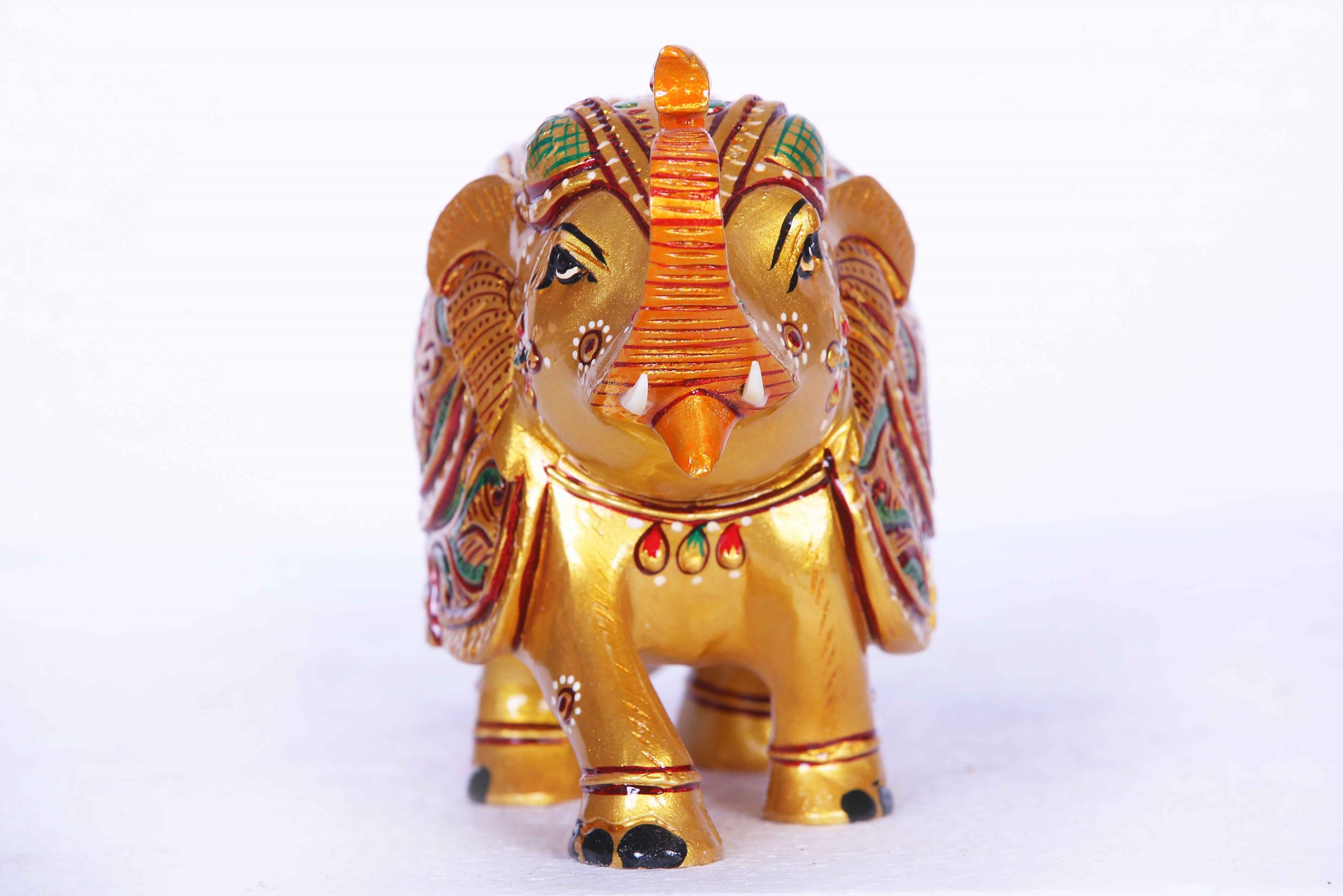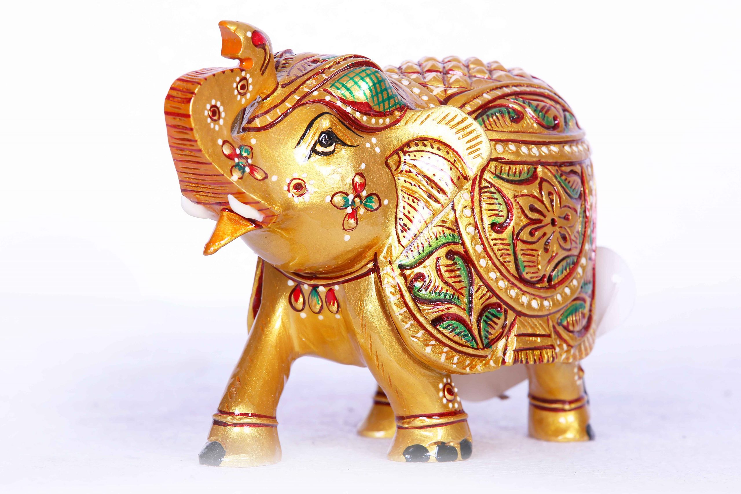 - Design: Features a regal elephant adorned with traditional motifs