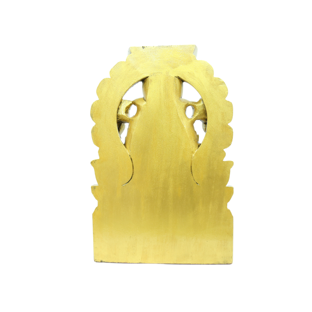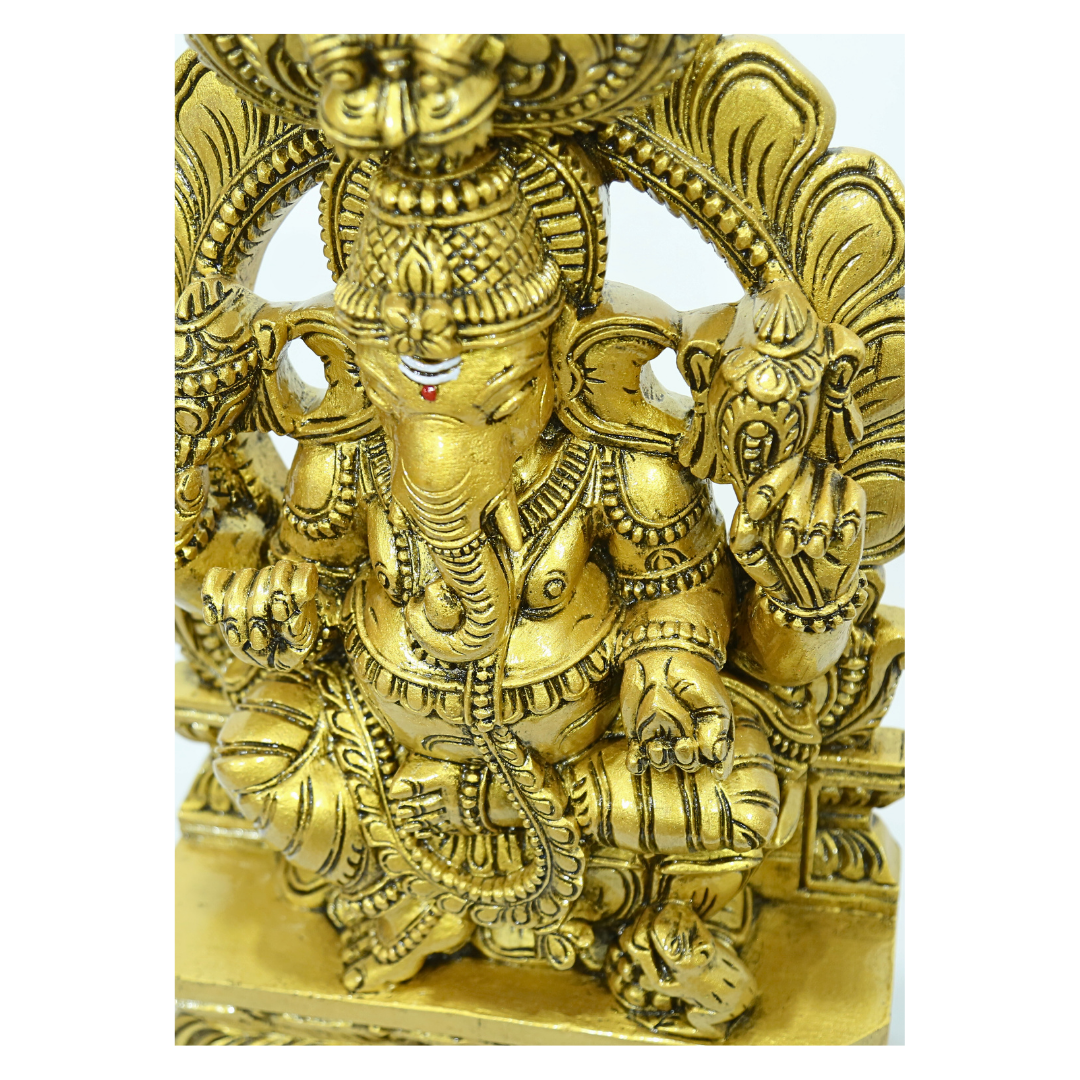 wood Arch Model Ganesh Sitting Statue (Gold Antique Look Painting)