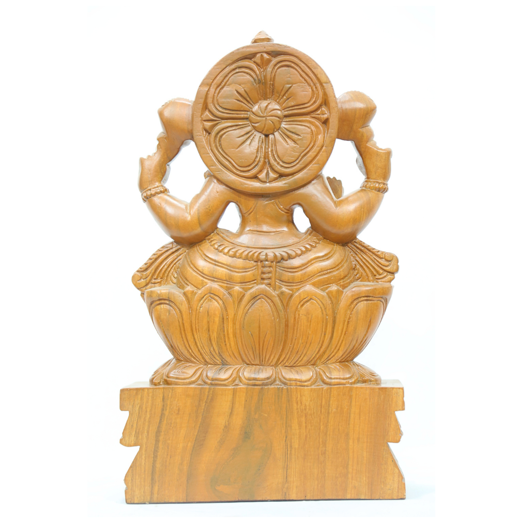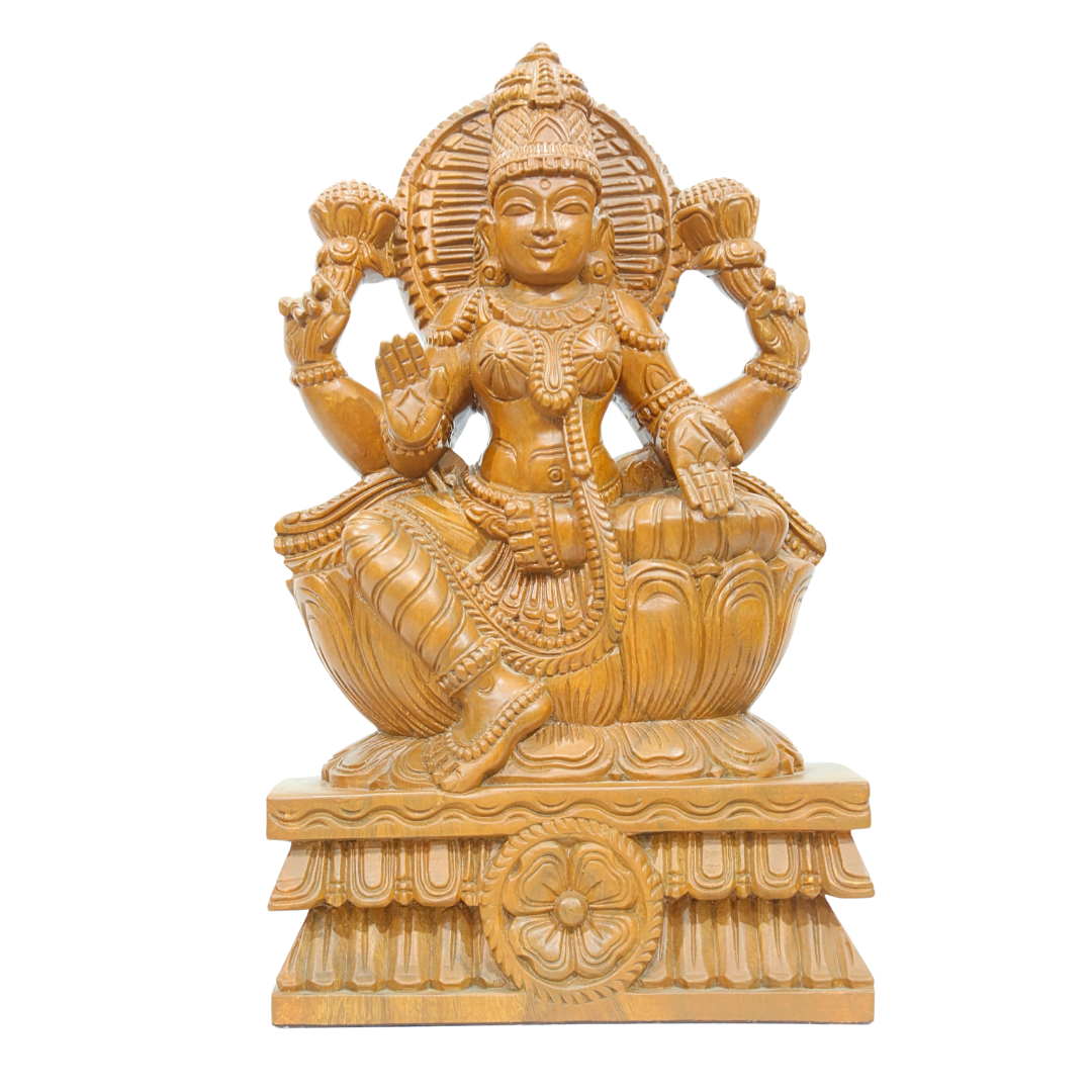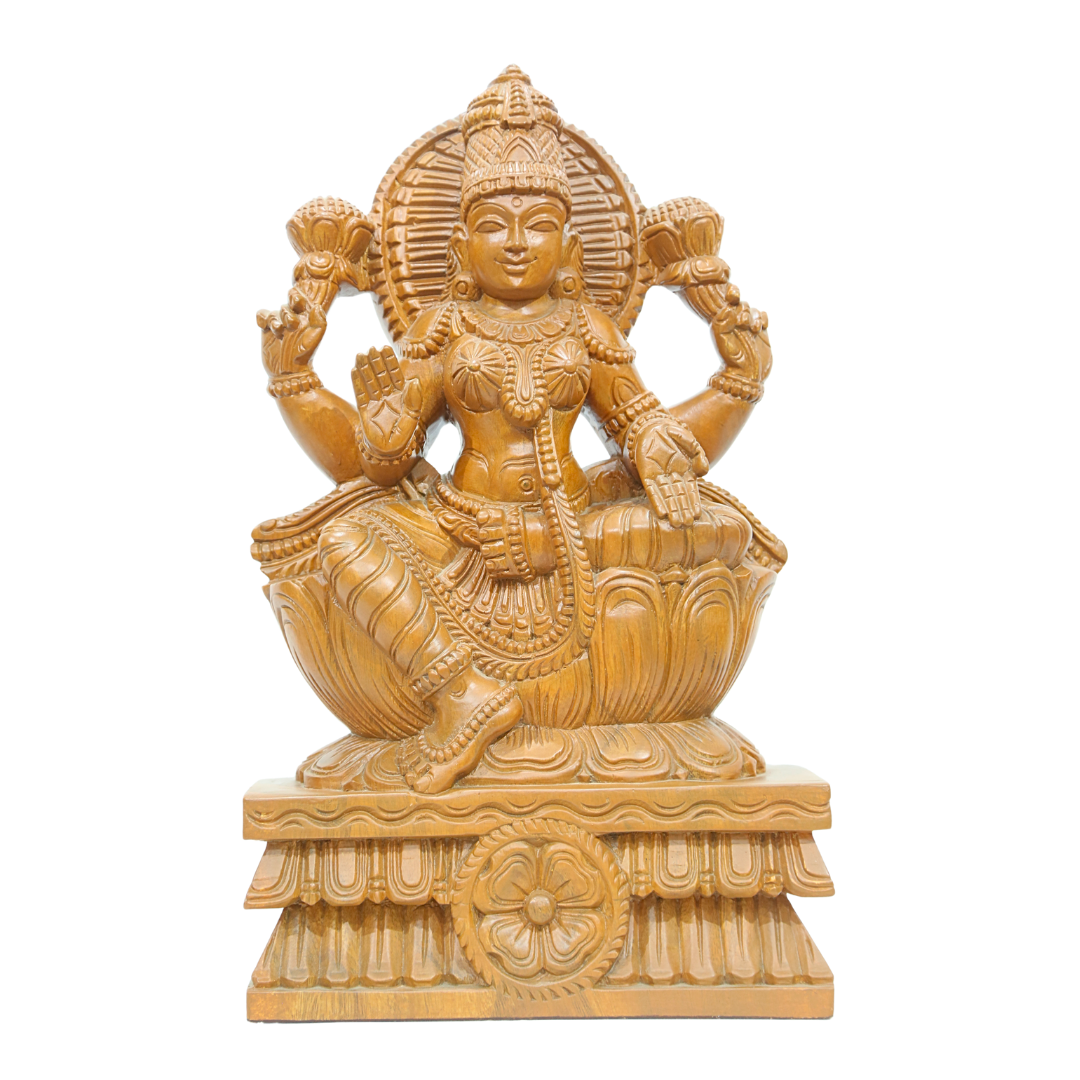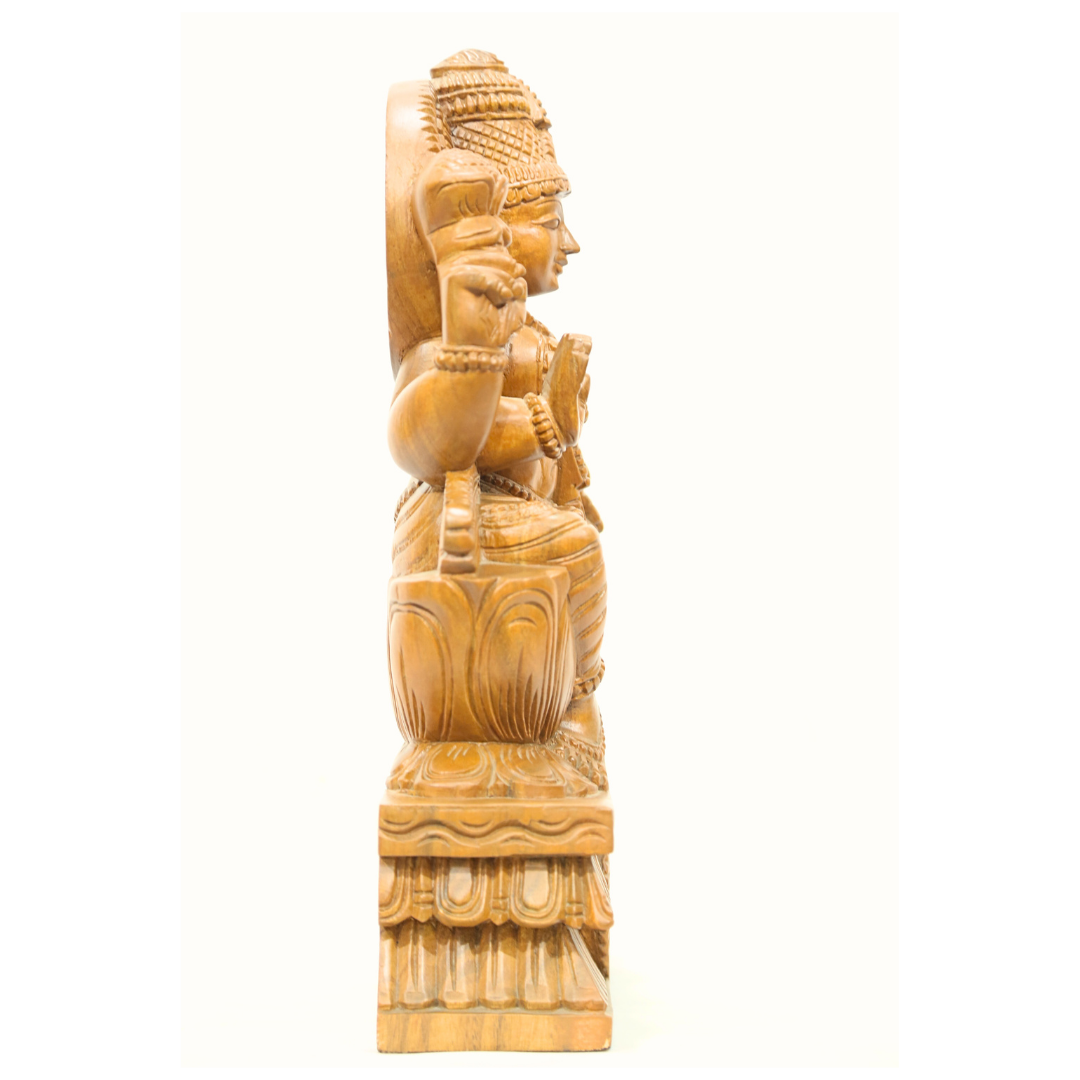 Wood Mahalakshmi (Teak Wood Polish) – 18-inch | Handcrafted Goddess Lakshmi Statue for Spiritual & Decorative Use