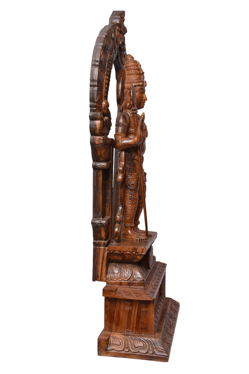 Wood Murugan Statue – 54 Inch – Handcrafted Divine Masterpiece