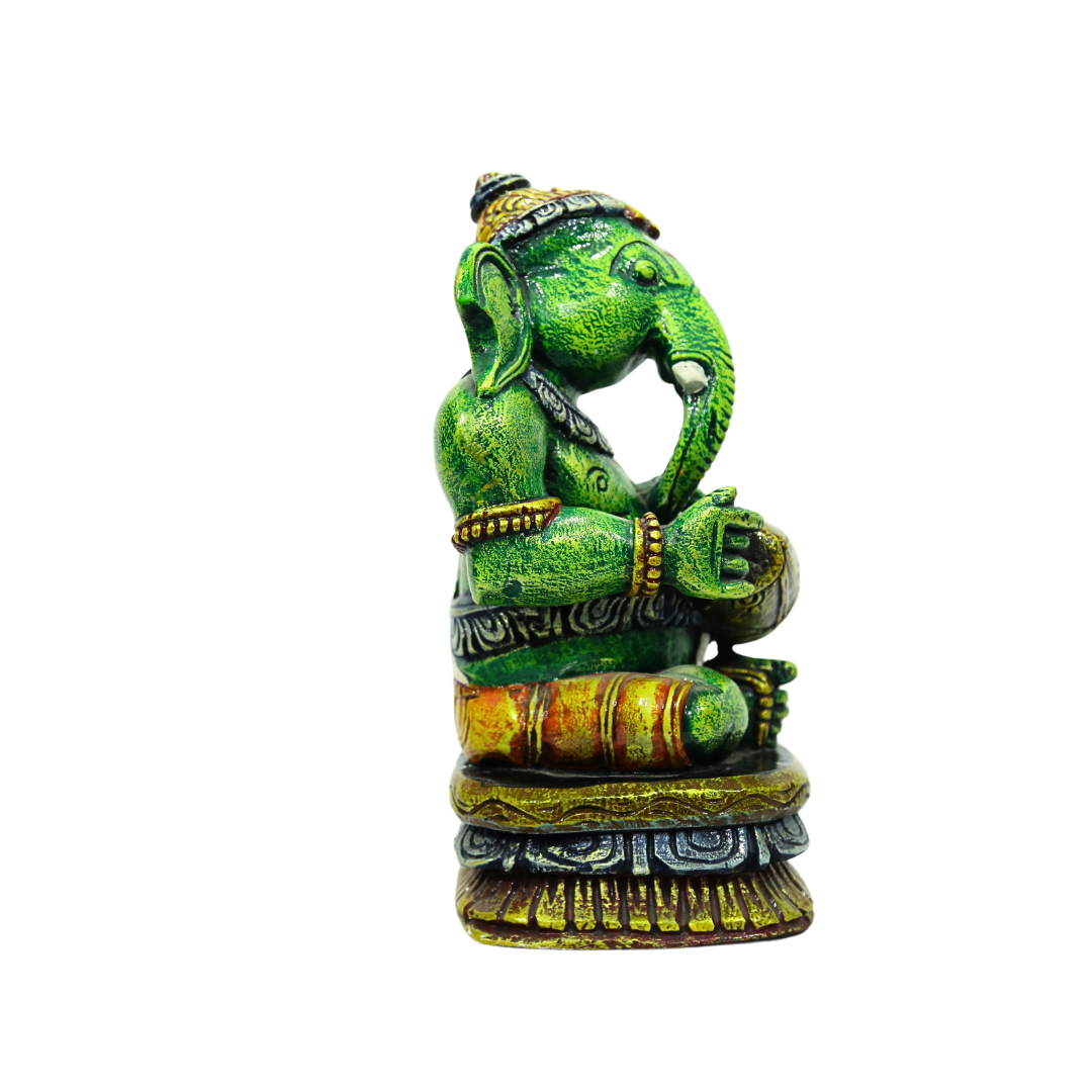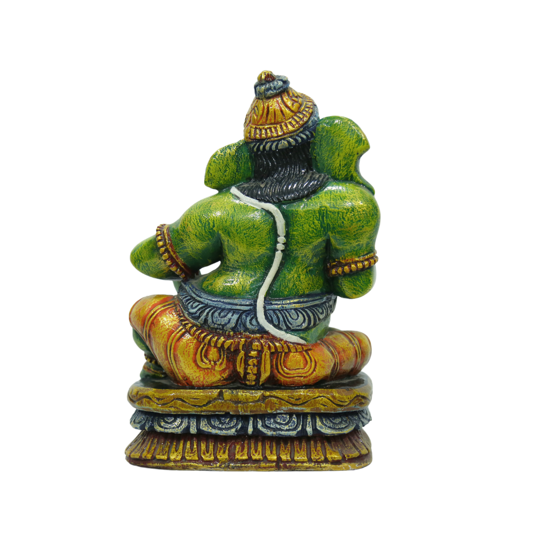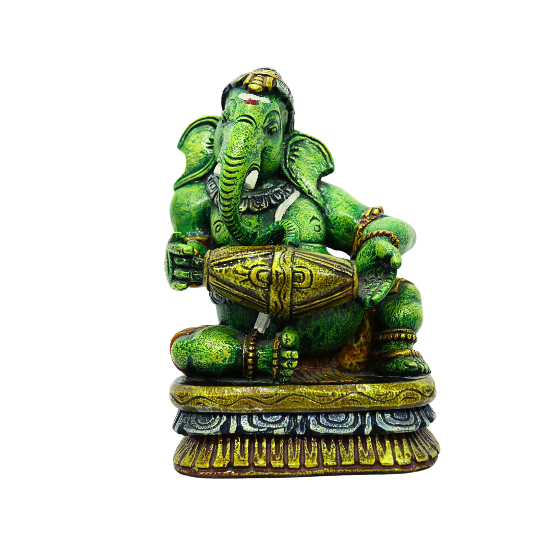 - Design: The statue depicts Lord Ganesha in a dynamic posture, holding the Thambla, a traditional musical instrument, symbolizing the rhythm and joy of life. His graceful features and vibrant attire are carefully hand-painted in a multicolor antique style, adding a spiritual charm to any room.