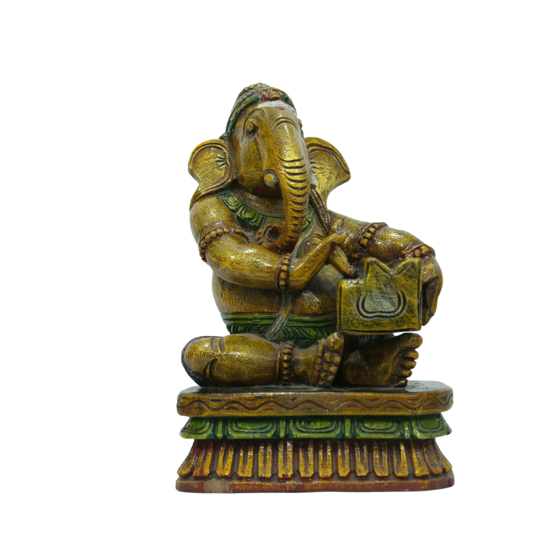 Bring home the divine melody and spiritual energy with this beautifully crafted 8-inch Wooden Musical Ganesha Statue, featuring Lord Ganesha joyfully playing the Thambla (tambourine), finished in a multicolor antique look painting for a unique and timeless appeal.