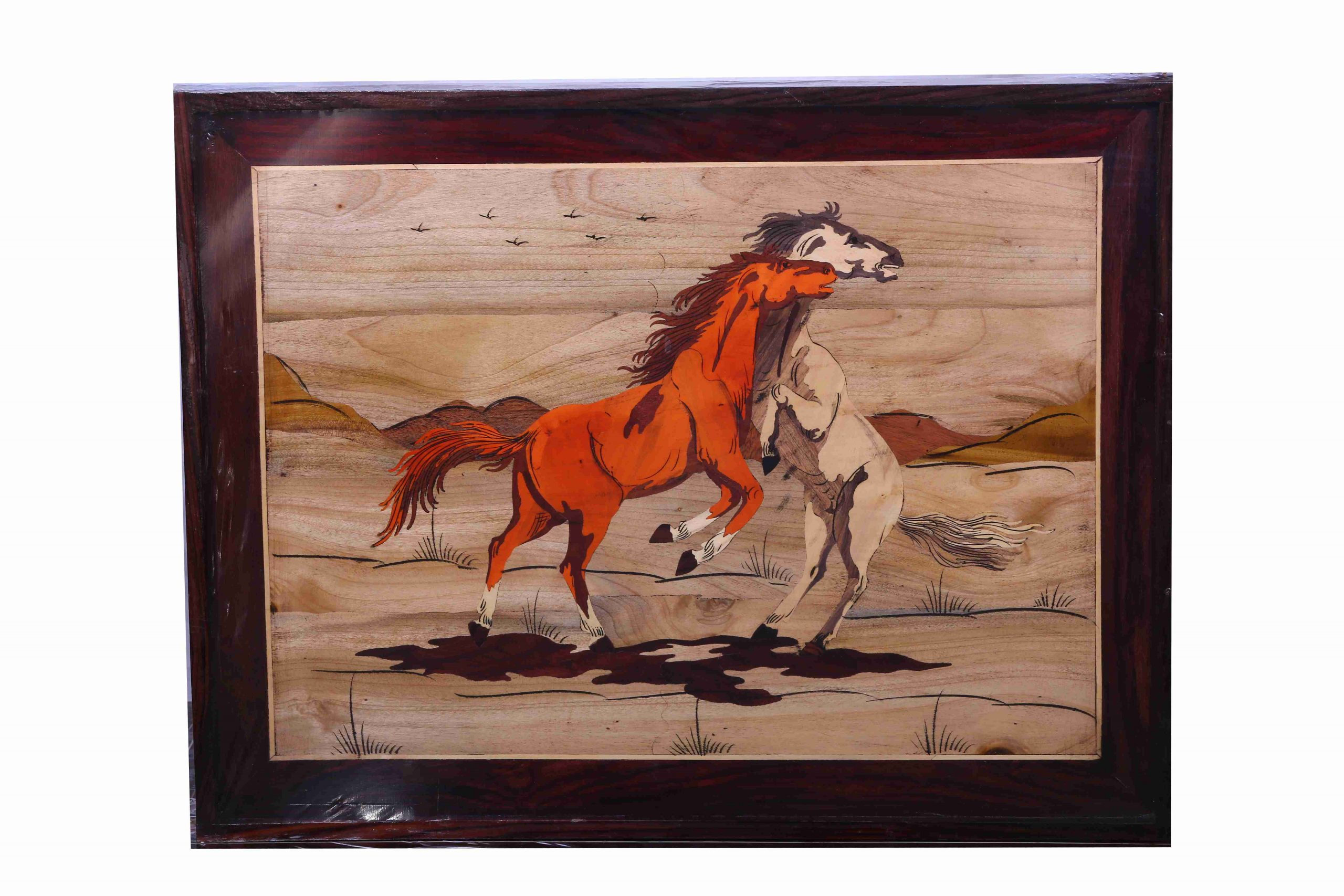 Experience the charm of rural India with this exquisite wood painting depicting a traditional bullock cart scene. Crafted with meticulous attention to detail, the artwork beautifully captures the essence of village life, from the rustic cart to the serene countryside backdrop. The warm tones and natural wood finish lend a timeless appeal, making it a perfect addition to your home or office décor. Celebrate heritage and artistry with this elegant piece that brings culture and tradition to life.