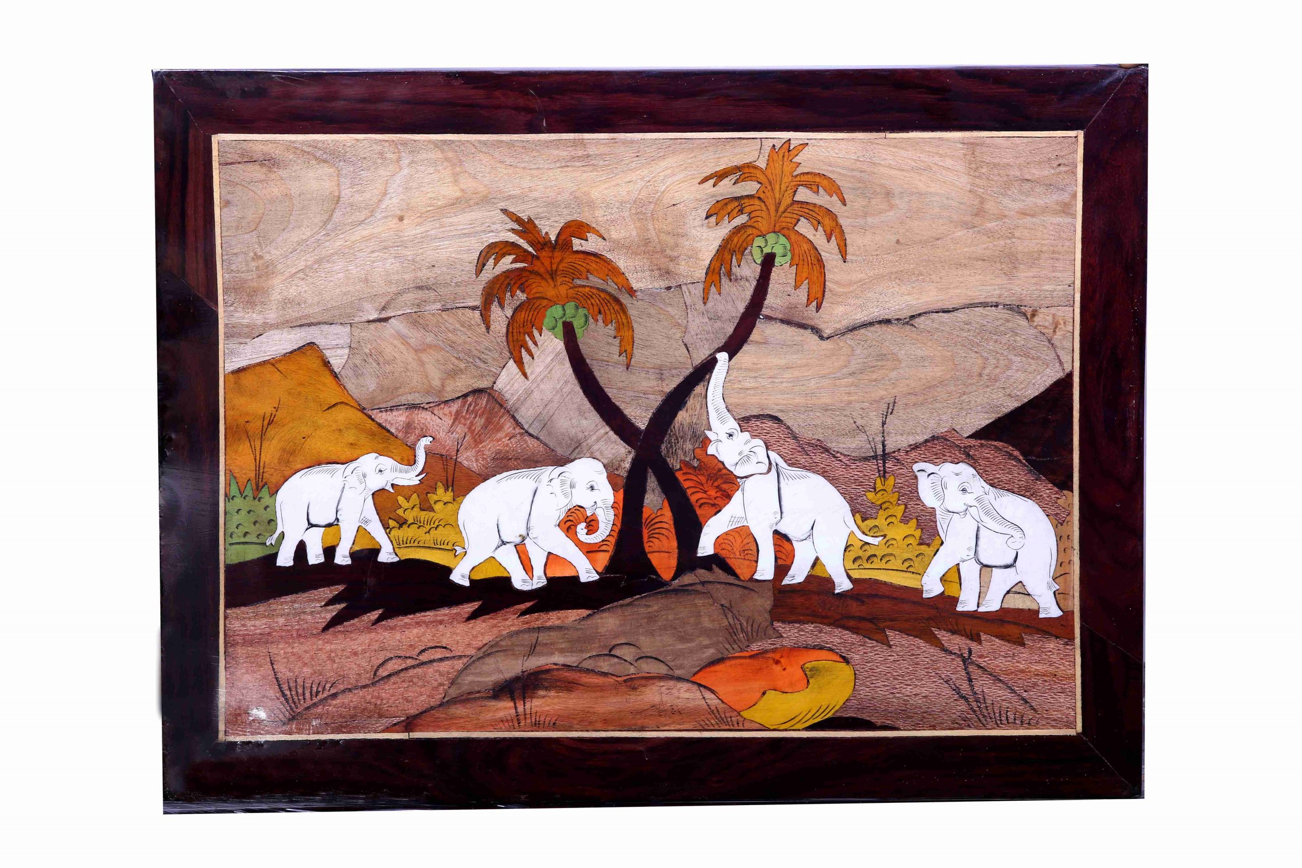 Wood Painting Elephant Panel
