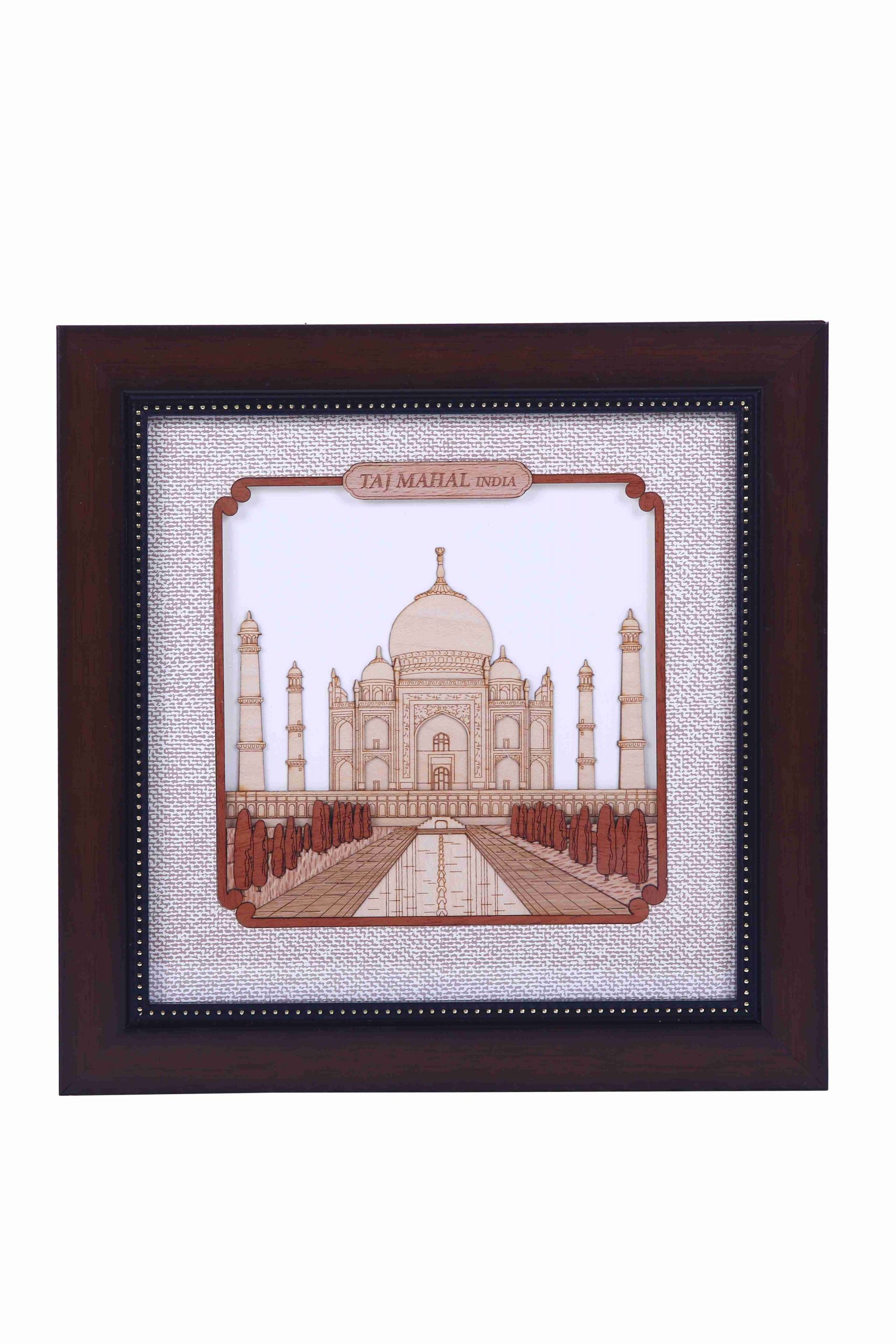 π Elegant Taj Mahal Design β A stunning handcrafted wood painting featuring the iconic Taj Mahal, capturing its timeless beauty with rich detailing and vibrant hues.