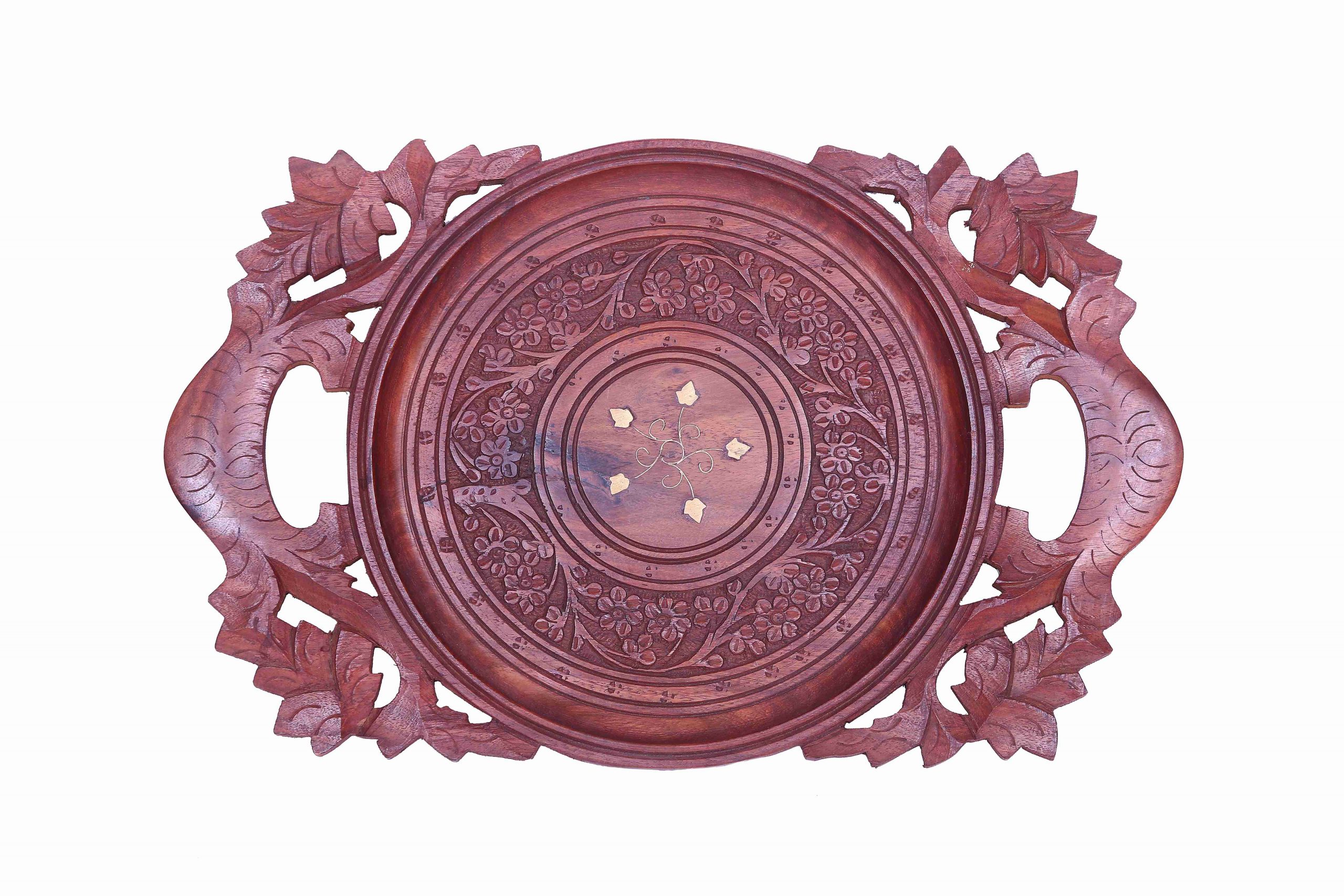 Handcrafted Carved Wooden Tray – Decorative & Functional Serving Tray for Home, Kitchen & Dining