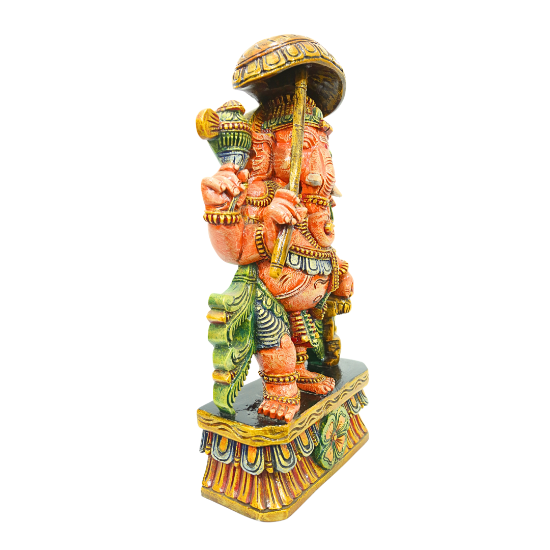 - Premium Wood Craftsmanship: This 23-inch Umbrella Ganesha Painting is crafted with precision on high-quality wood, giving it a sturdy and durable base. The wood’s natural texture enhances the authenticity of the piece, creating a rustic charm that elevates the divine presence of Lord Ganesha in your home.