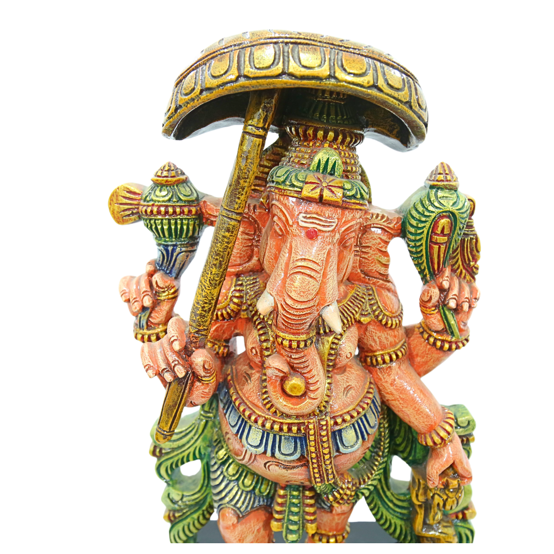 wood Umberlla Ganesha Multicolor Antique Look Painting