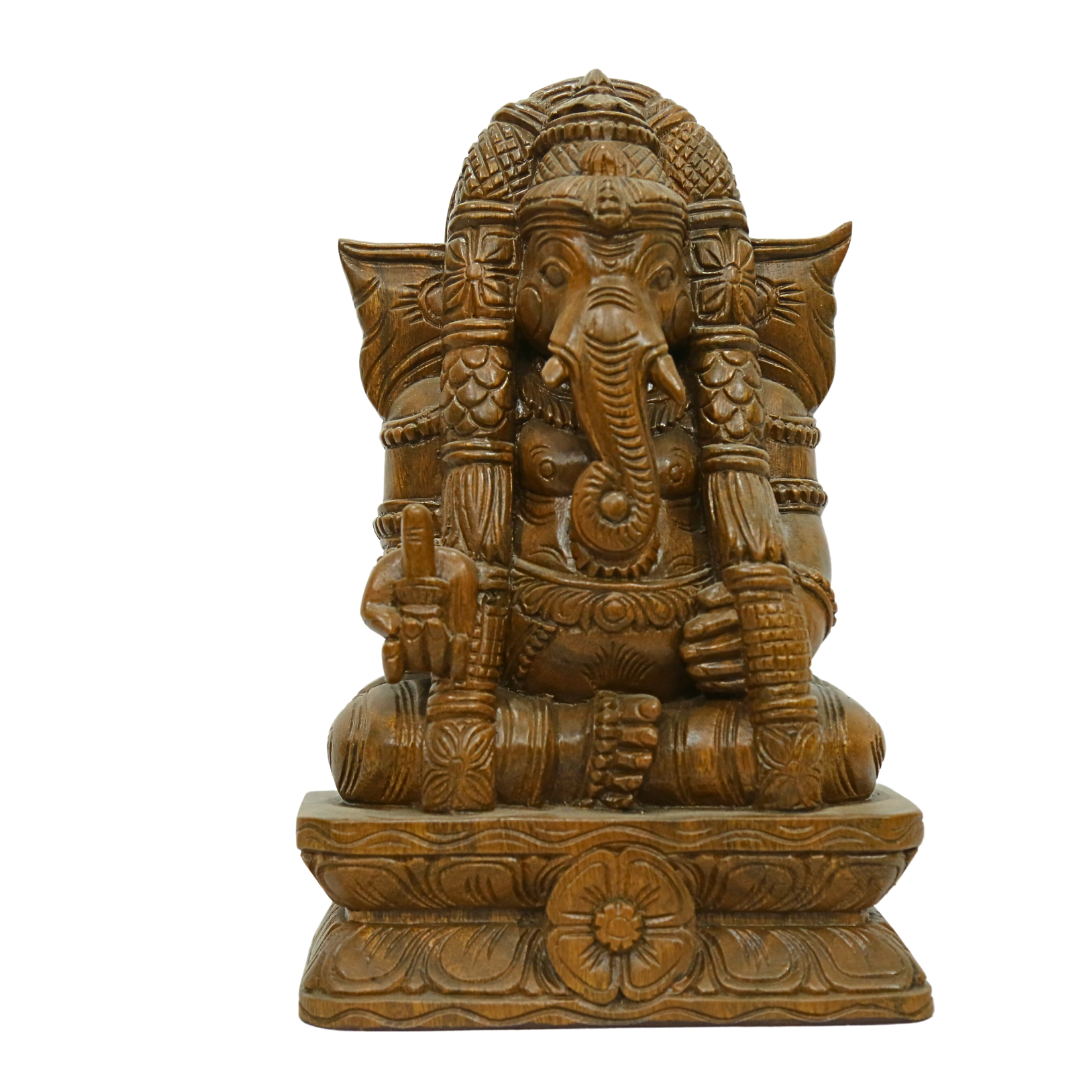 Wooden Vinayagar with Shivalingam Statue – 12-Inch (Maavilangai Wood)