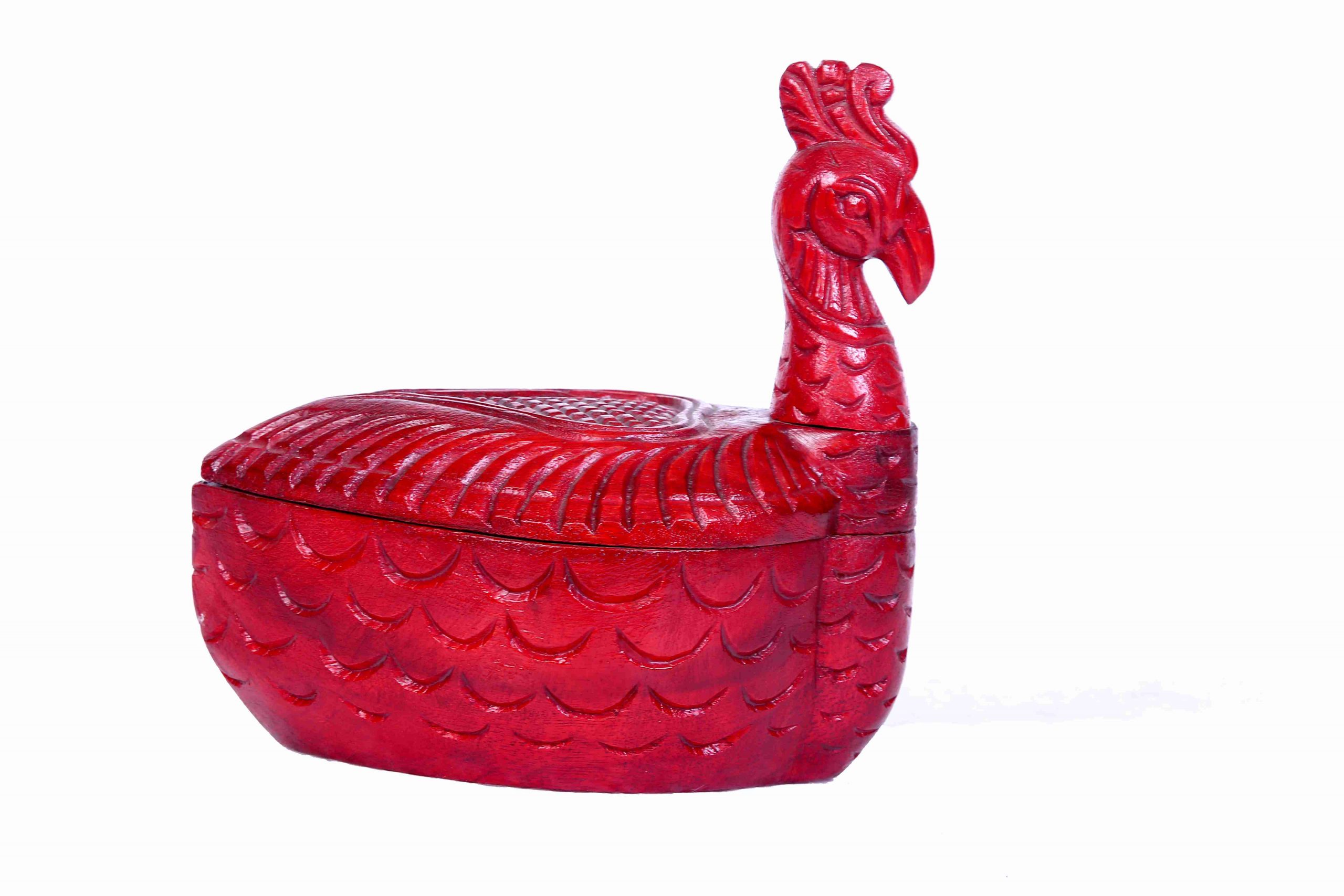Design: Intricately carved bird figure on the lid for a rustic, artistic touch